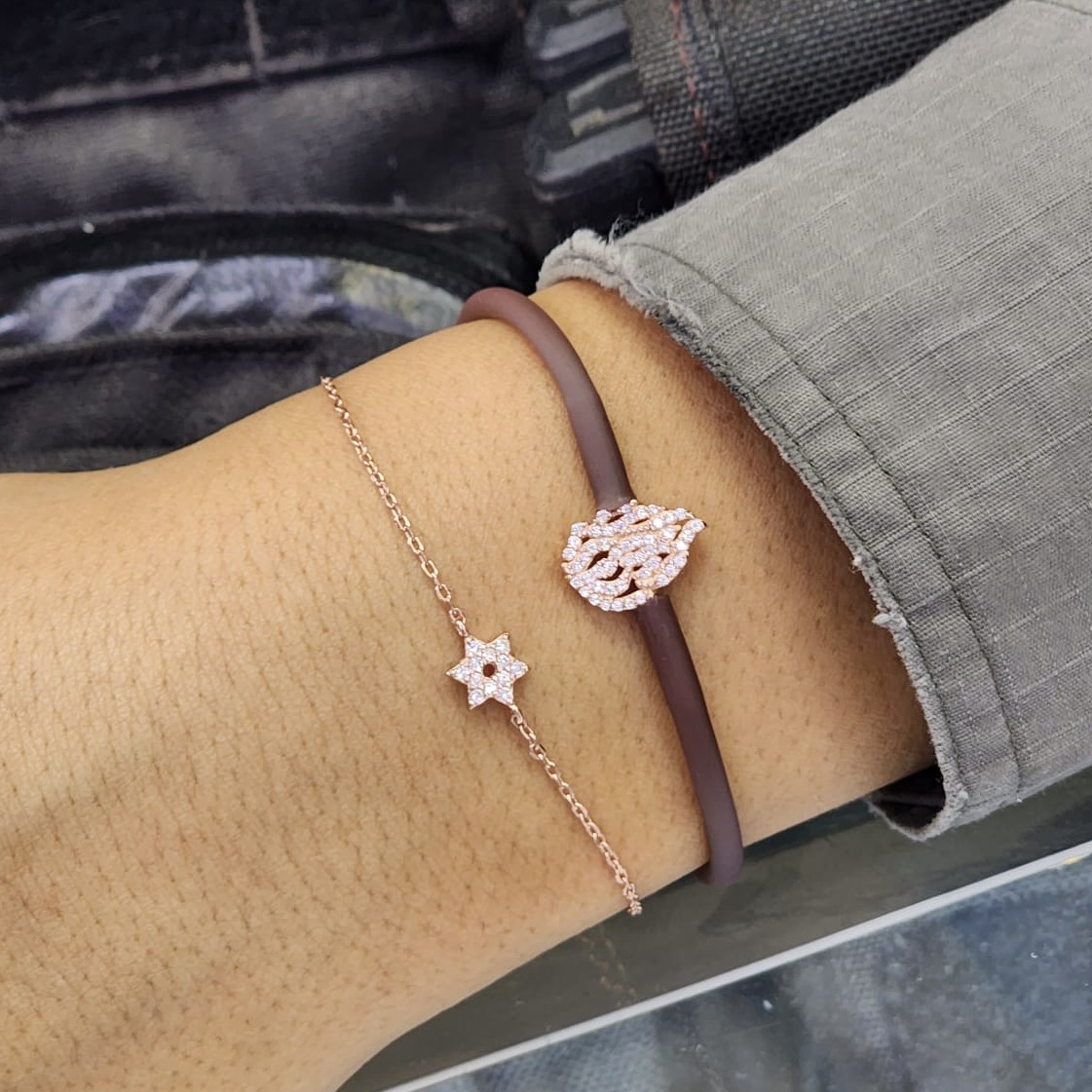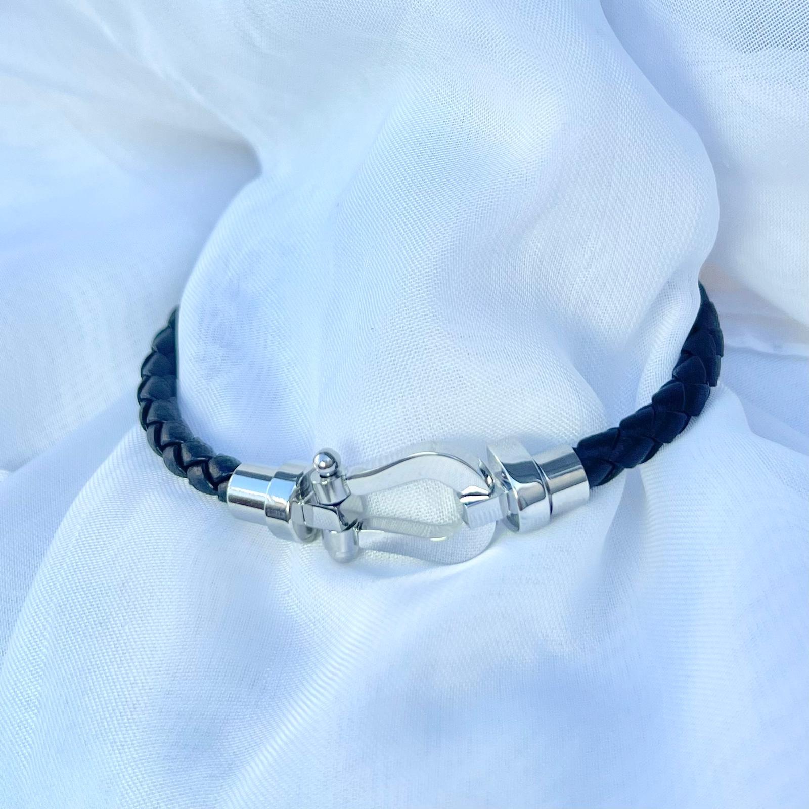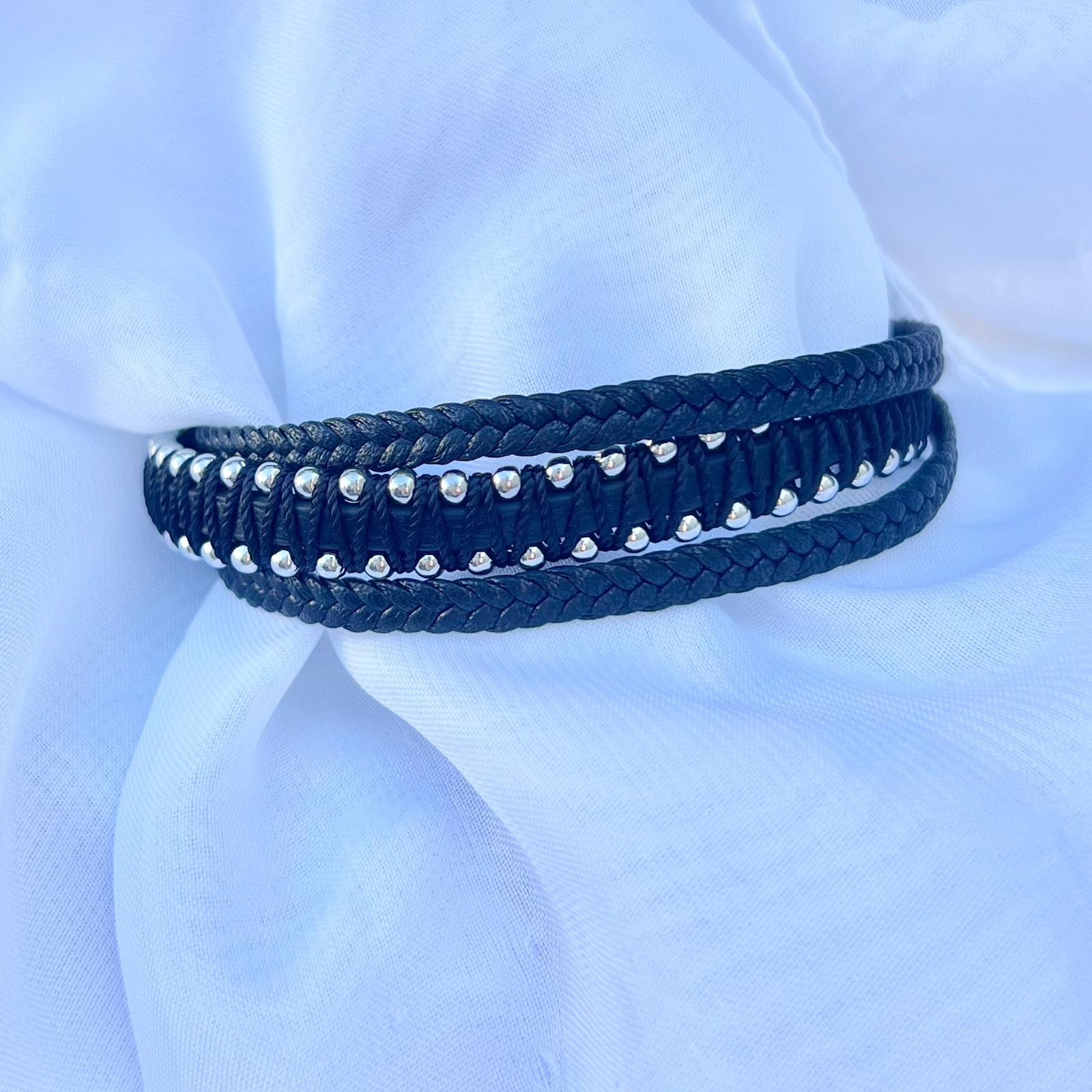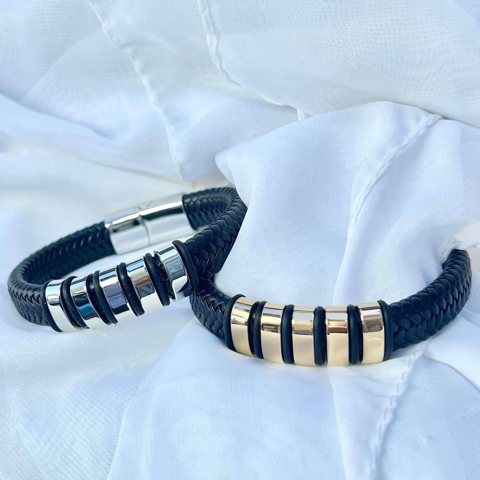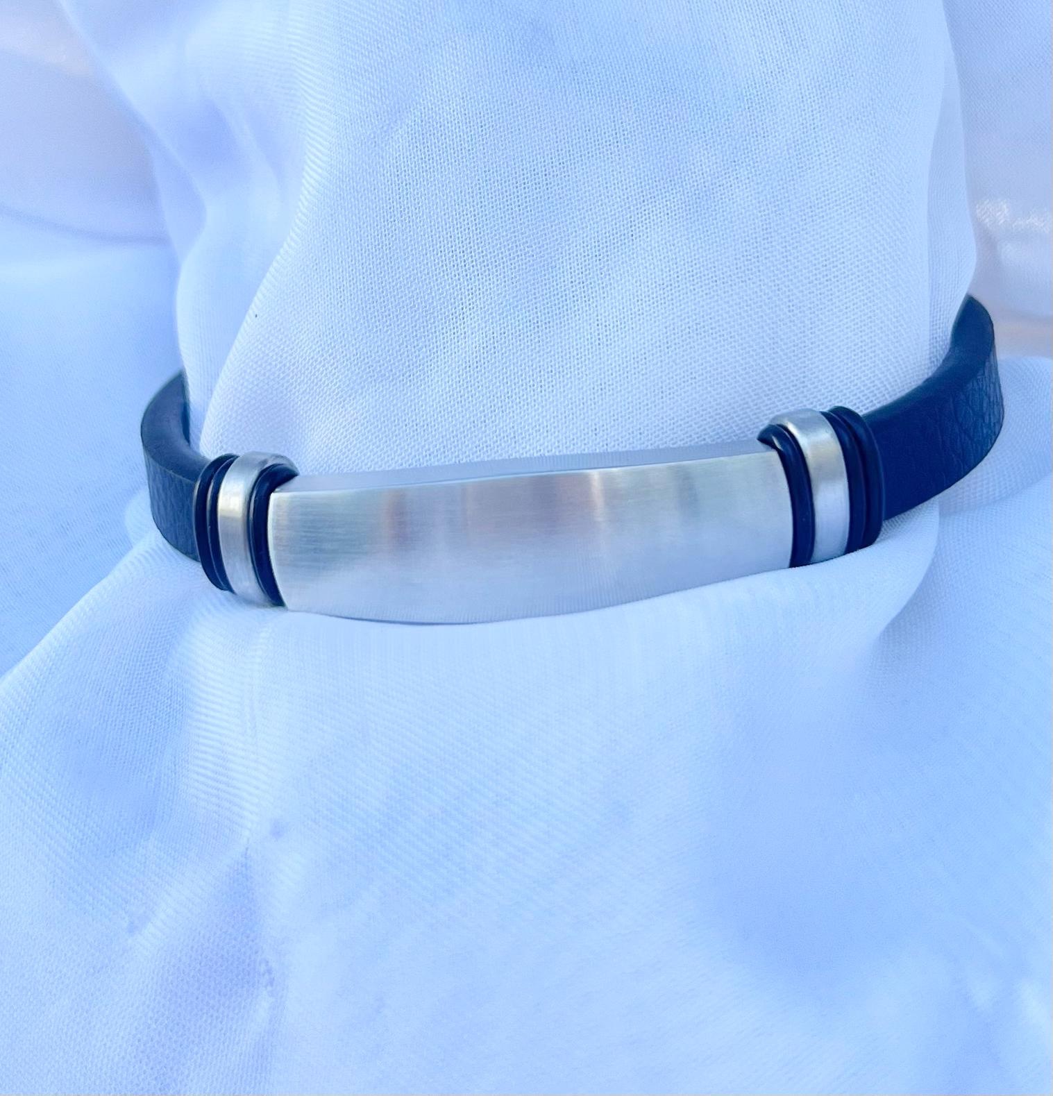 צמיד לגבר בעל 3 שורות עור עם פלטת חריטה שחורה יברכךה’וישמרך עשוי מסטנסטיל אל חלד