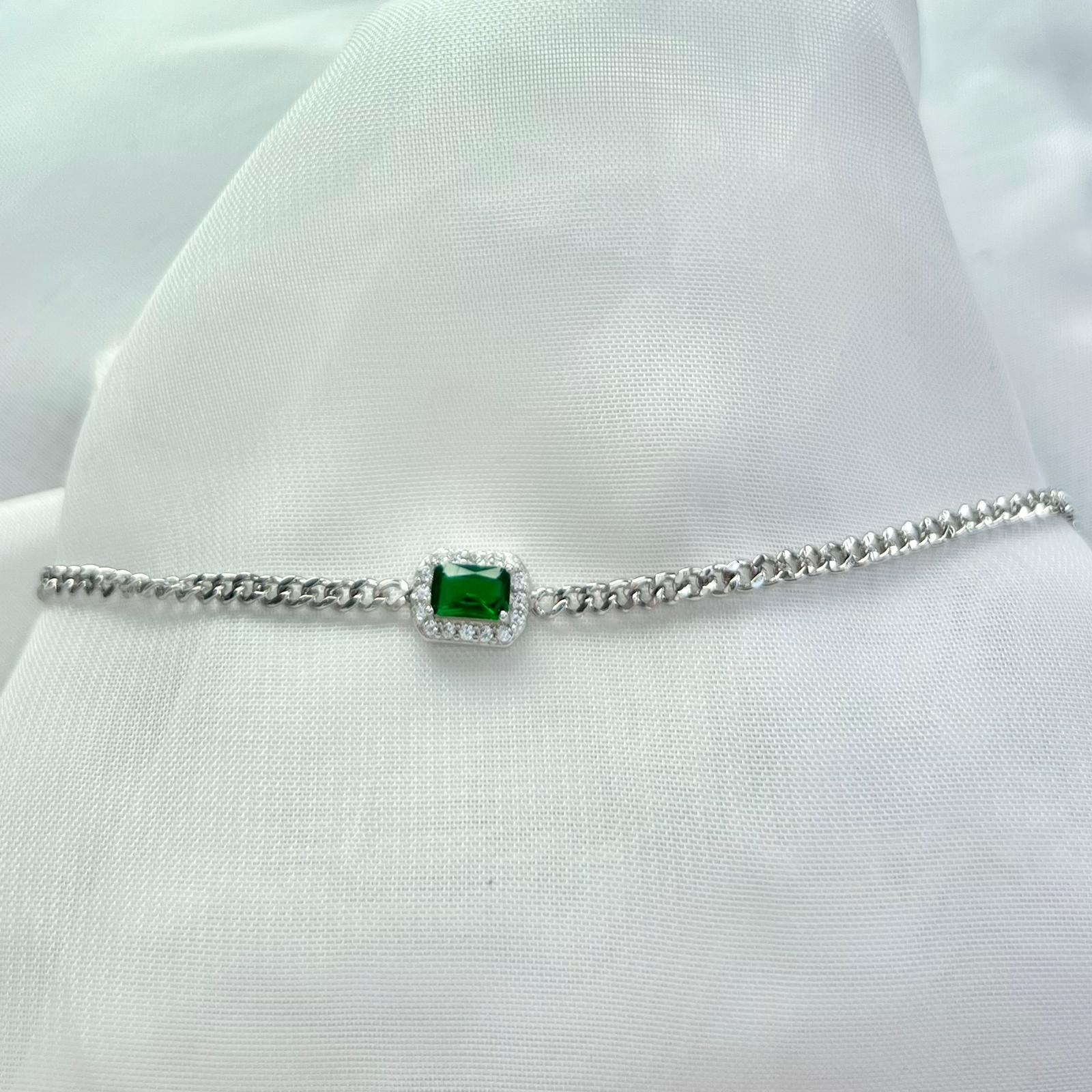 צמיד גורמט יהלום מלבני משובץ מסביב במרכז מכסף אמיתי 925