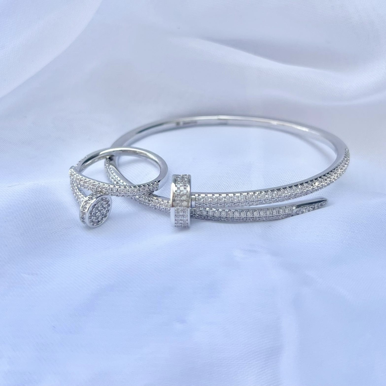 טבעת בצורת בורג משבץ אבני זרקון מרודיום איכותי