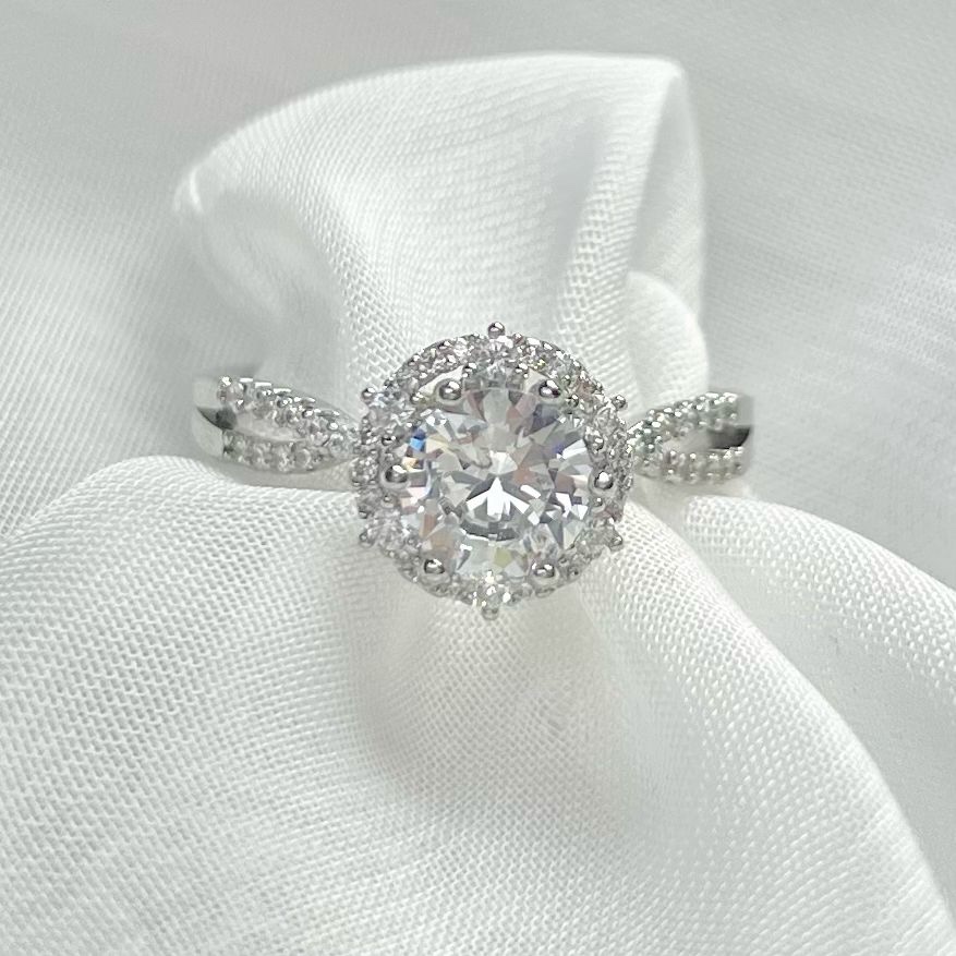 טבעת משובצת עם אבן סוליטר עגולה מרודיום איכותי