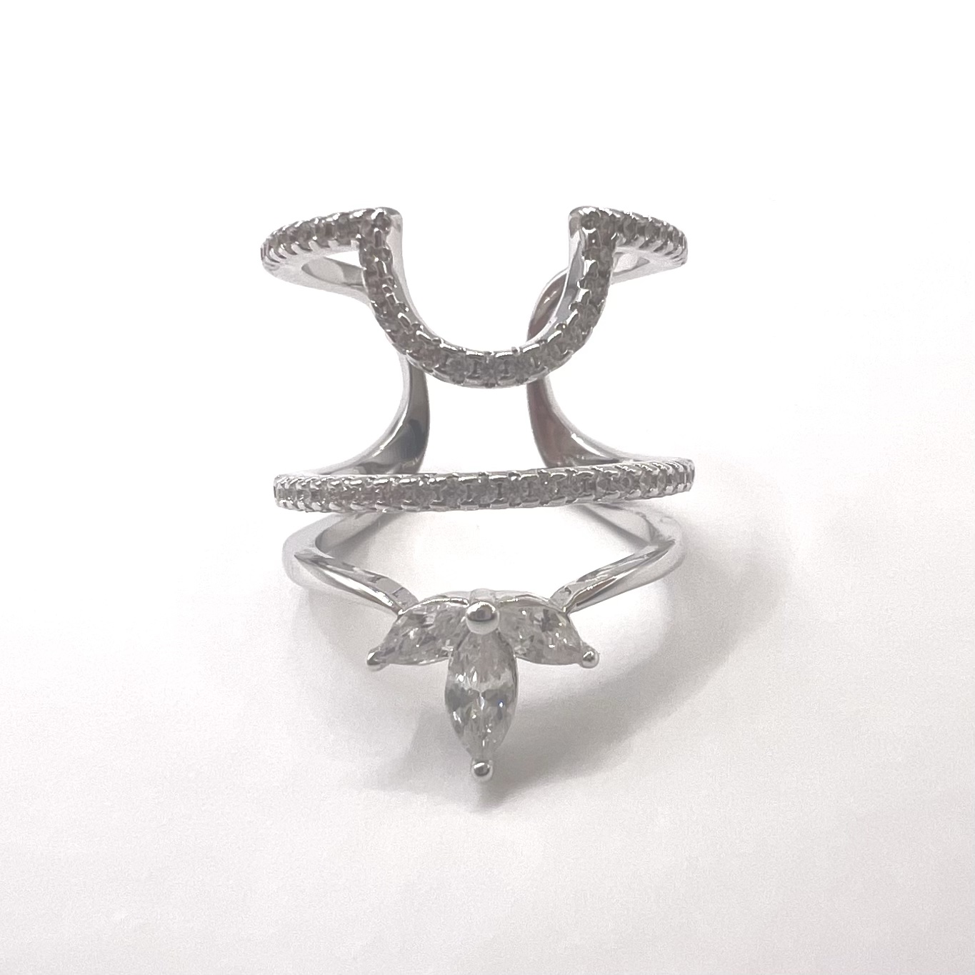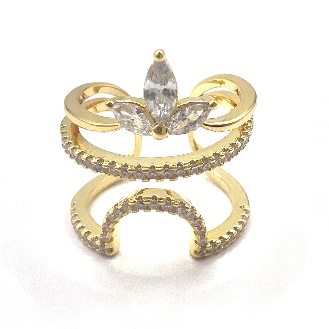 טבעת זרת משובצת אבני זרקון ועיצוב לוטוס מרודיום איכותי