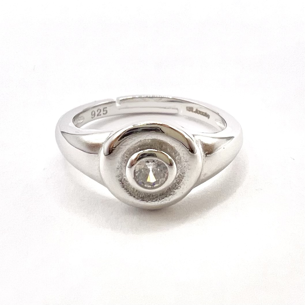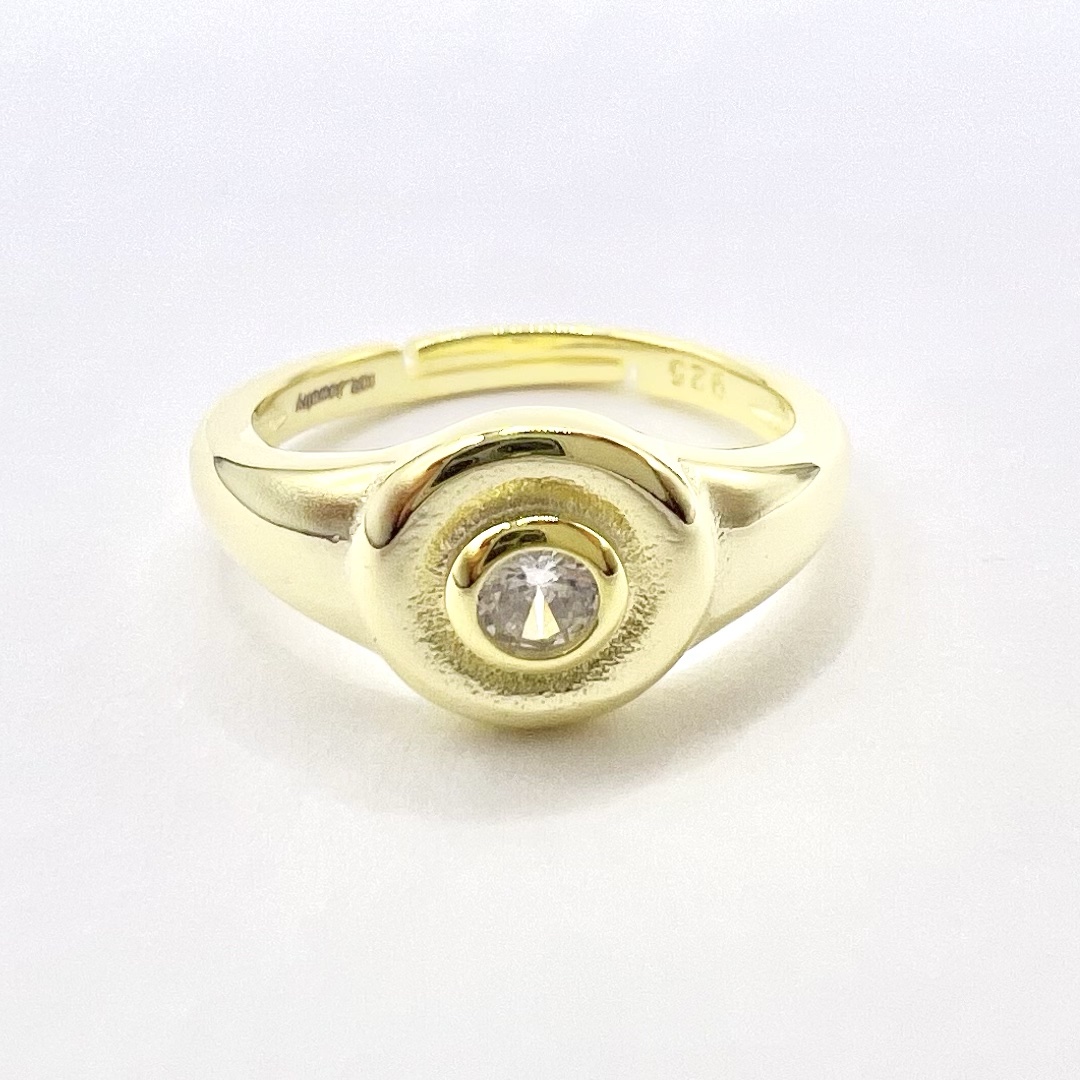 טבעת לזרת חותם פלטה על פלטה משובצת אבן זרקון מכסף אמיתי 925