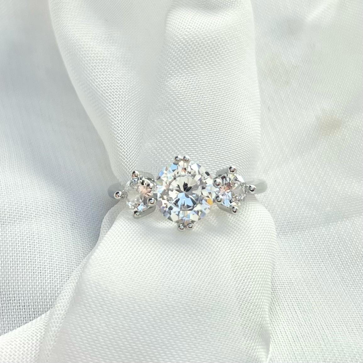 טבעת שלוש אבנים עגולות מרודיום איכותי