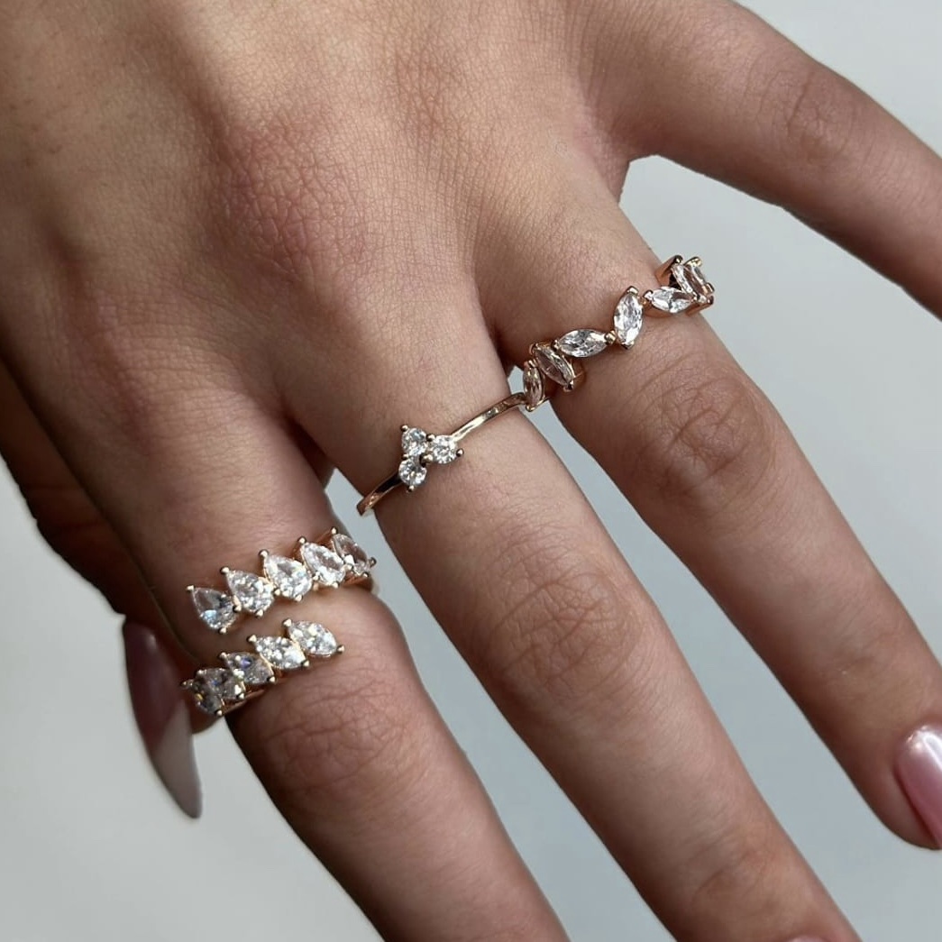 טבעת משובצת אבני זרקון בצורת טיפות מכסף אמיתי 925