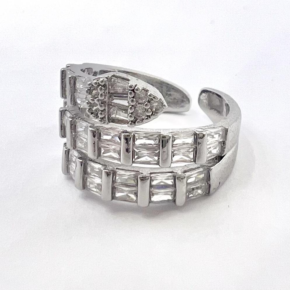טבעת עם שלושה שורות של אבני זרקון מרובעות מרודיום איכותי