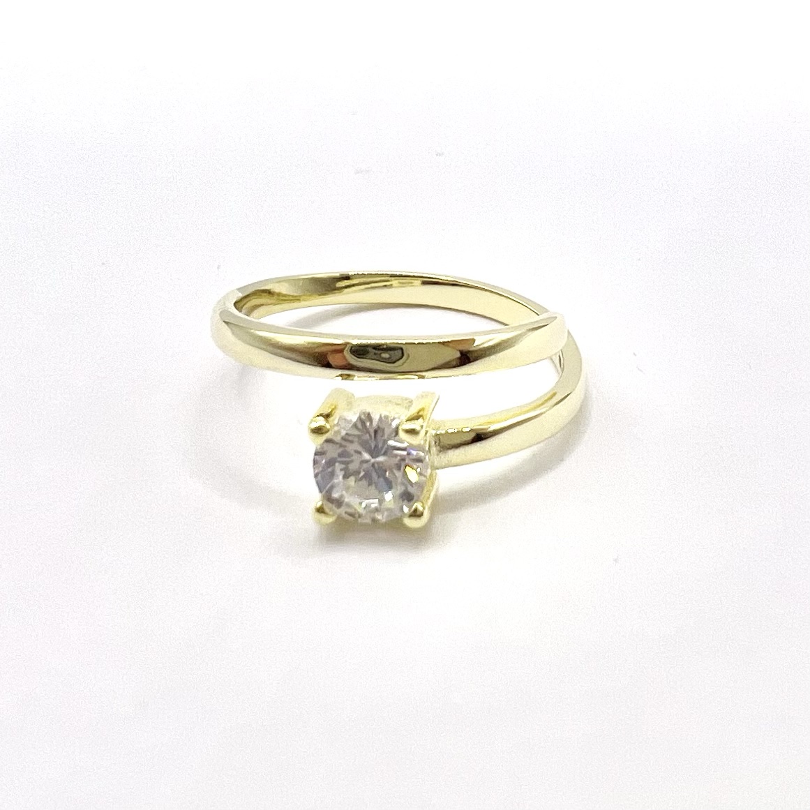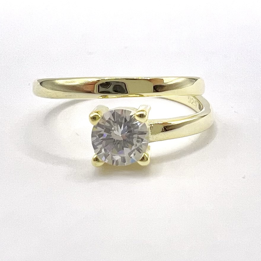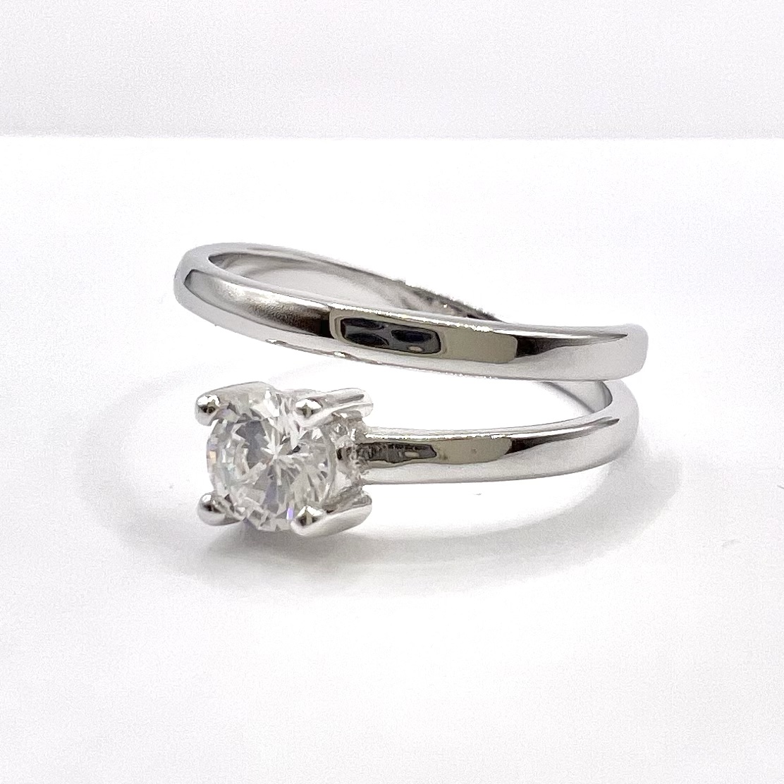 טבעת מסולסלת עם אבן זרקון עגולה מכסף אמיתי 925 וואנסייז