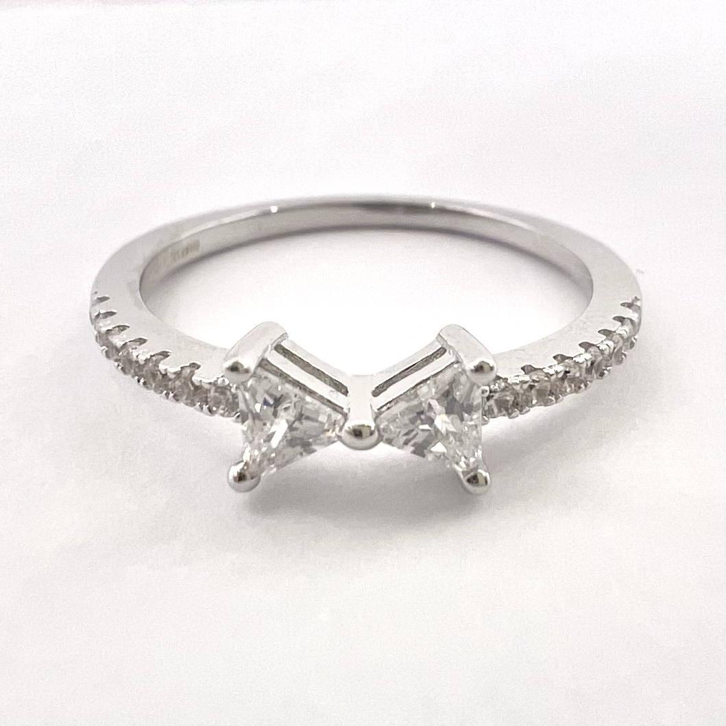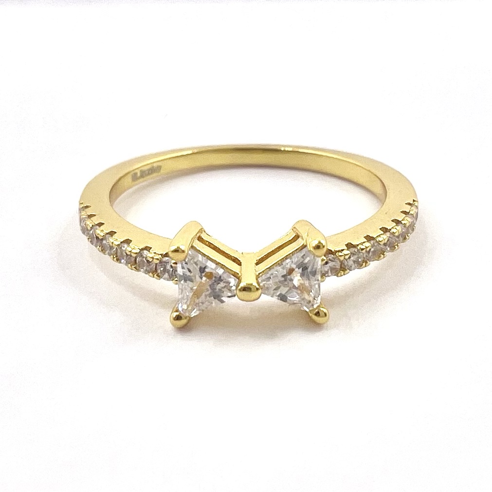 טבעת משובצת אבני זרקון עם שתי אבנים במרכז בצורת פפיון מכסף אמיתי 925