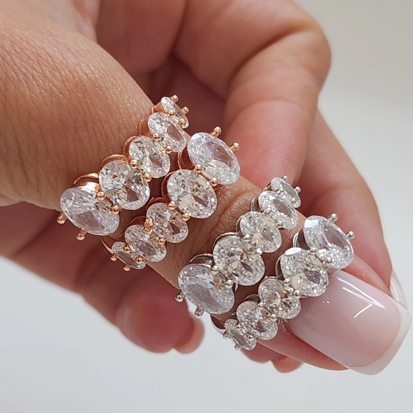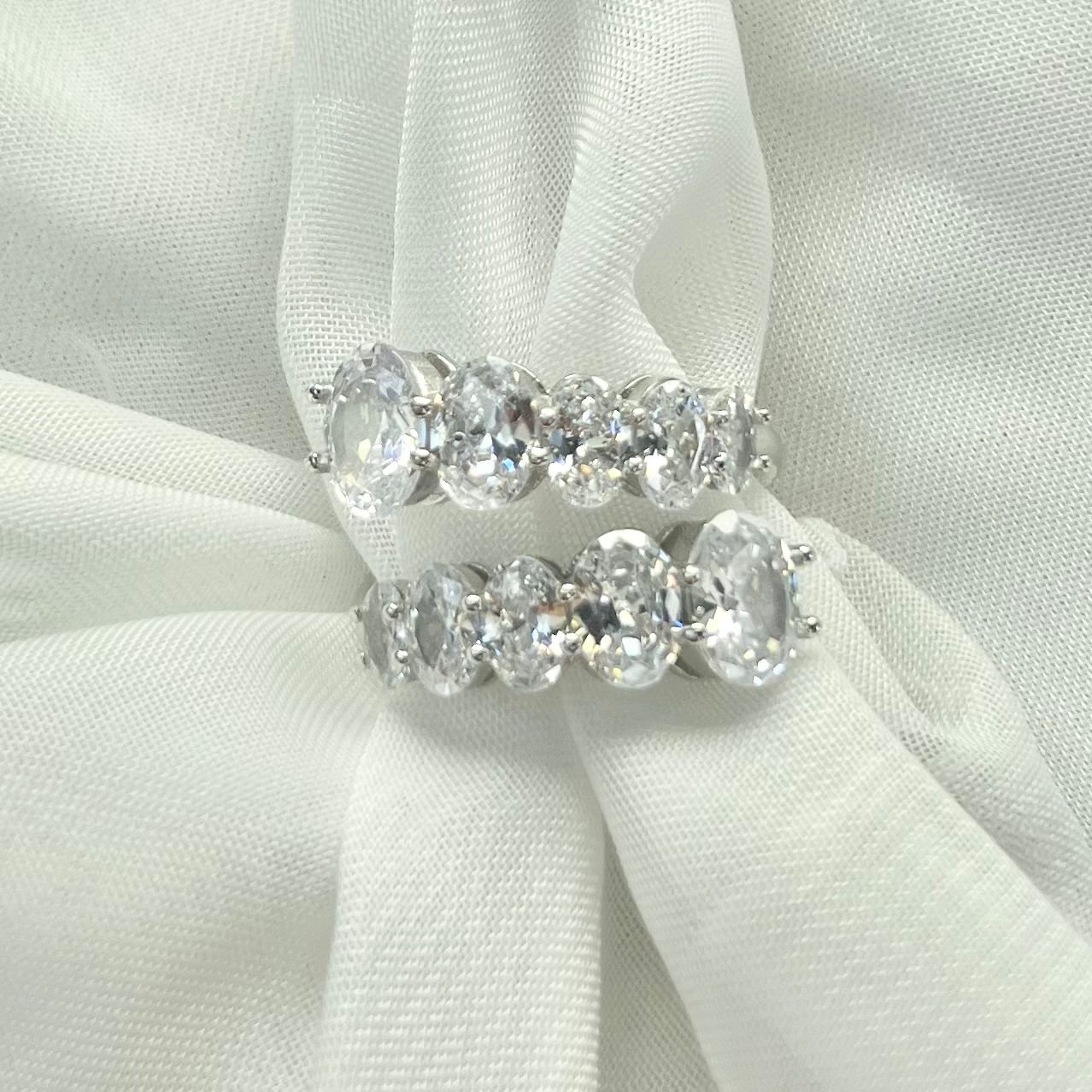 טבעת משובץ אבני זרקון בצורת אליפסה מדורגות מכסף אמיתי 925