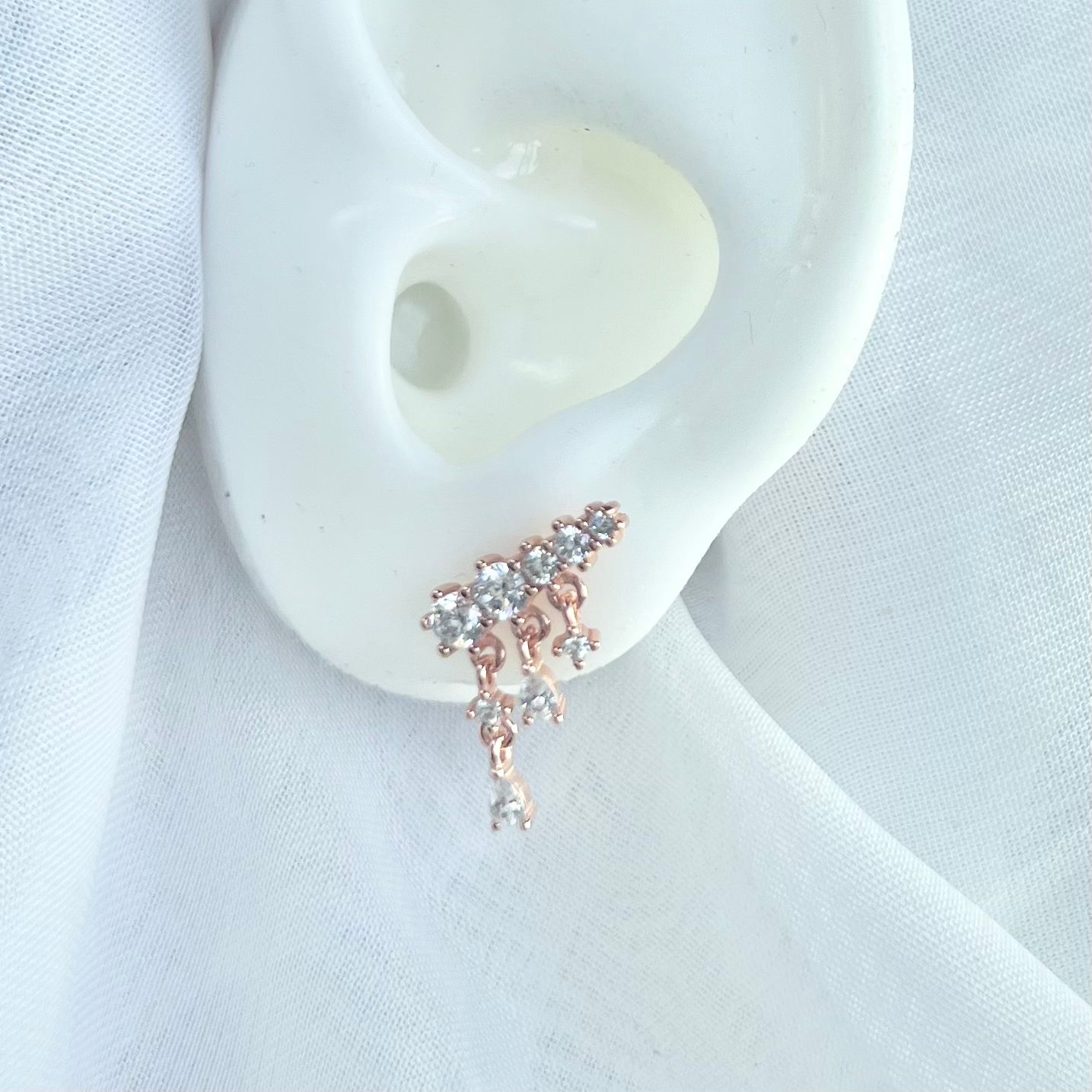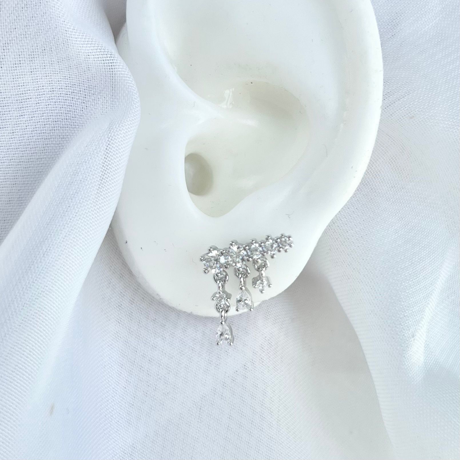 עגיל צמוד עם שורה של אבני זרקון עגולות מחוברות לשלושה שרשראות עם אבן זרקון עגולה בסופה מכסף אמיתי 925