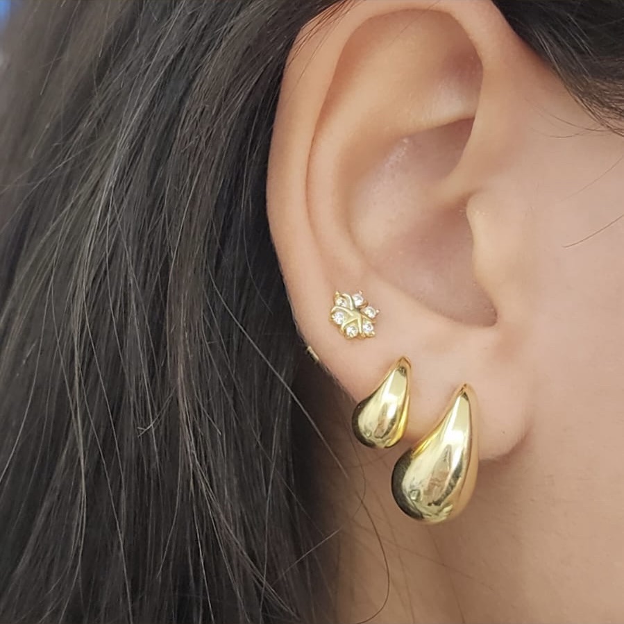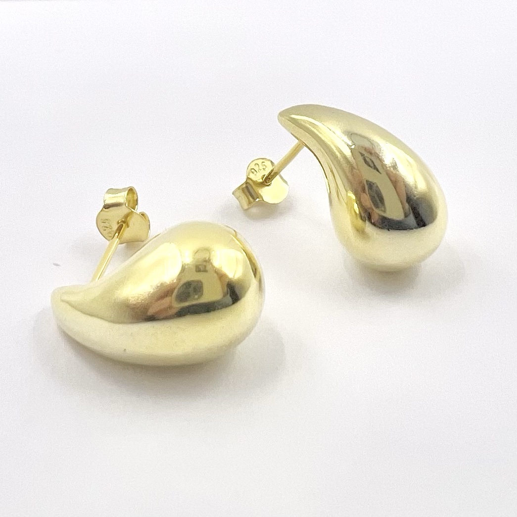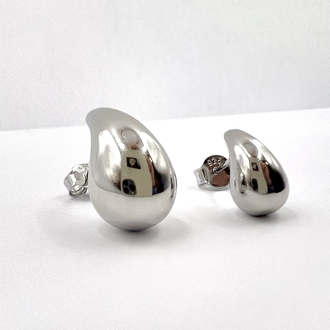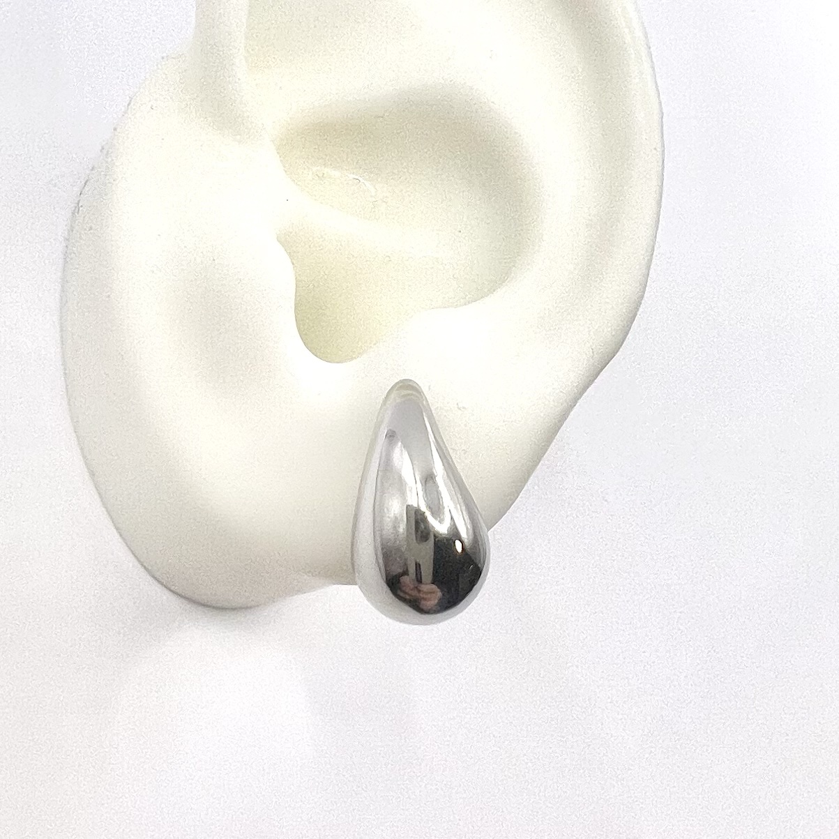 עגיל צמוד בצורת טיפה חלקה מכסף אמיתי 925