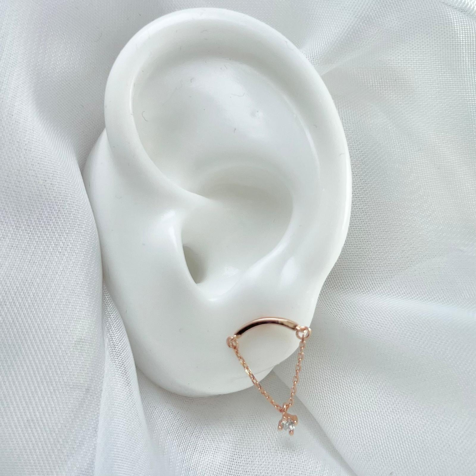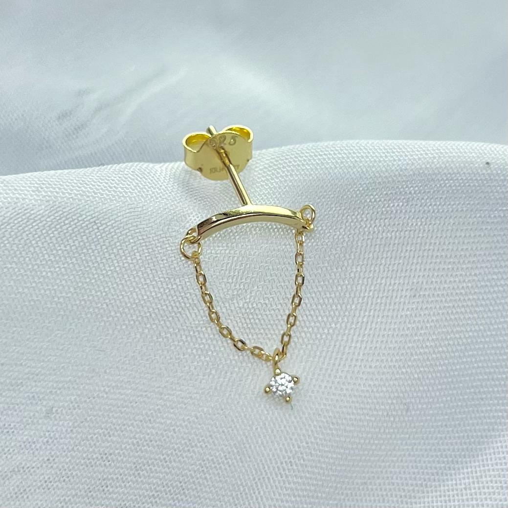 עגיל צמוד עם קו חלק שמחובר לאבן זרקון עגולה נופלת מכסף אמיתי 925