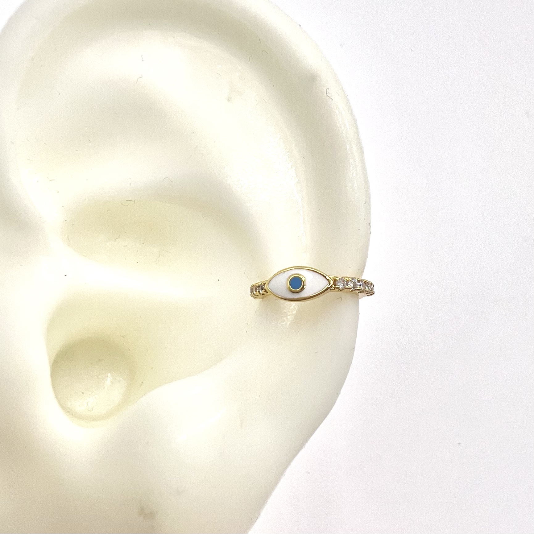 עגיל הליקס ללא צורך בחור משובץ אבני זרקון ועין לבנה מרודיום איכותי