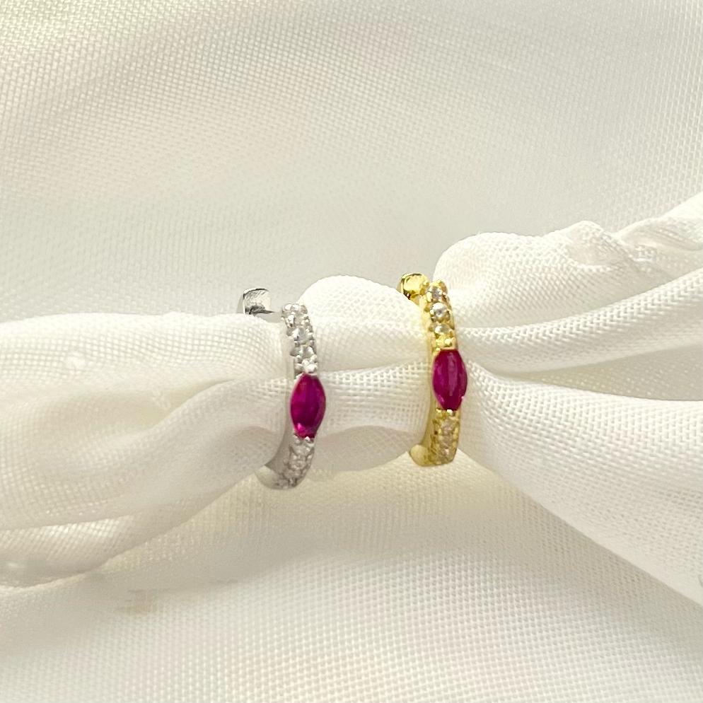 עגיל חישוק משובץ זרקונים עם אבן זרקון גדולה בצורת טיפה במרכז במבחר צבעים מכסף אמיתי 925