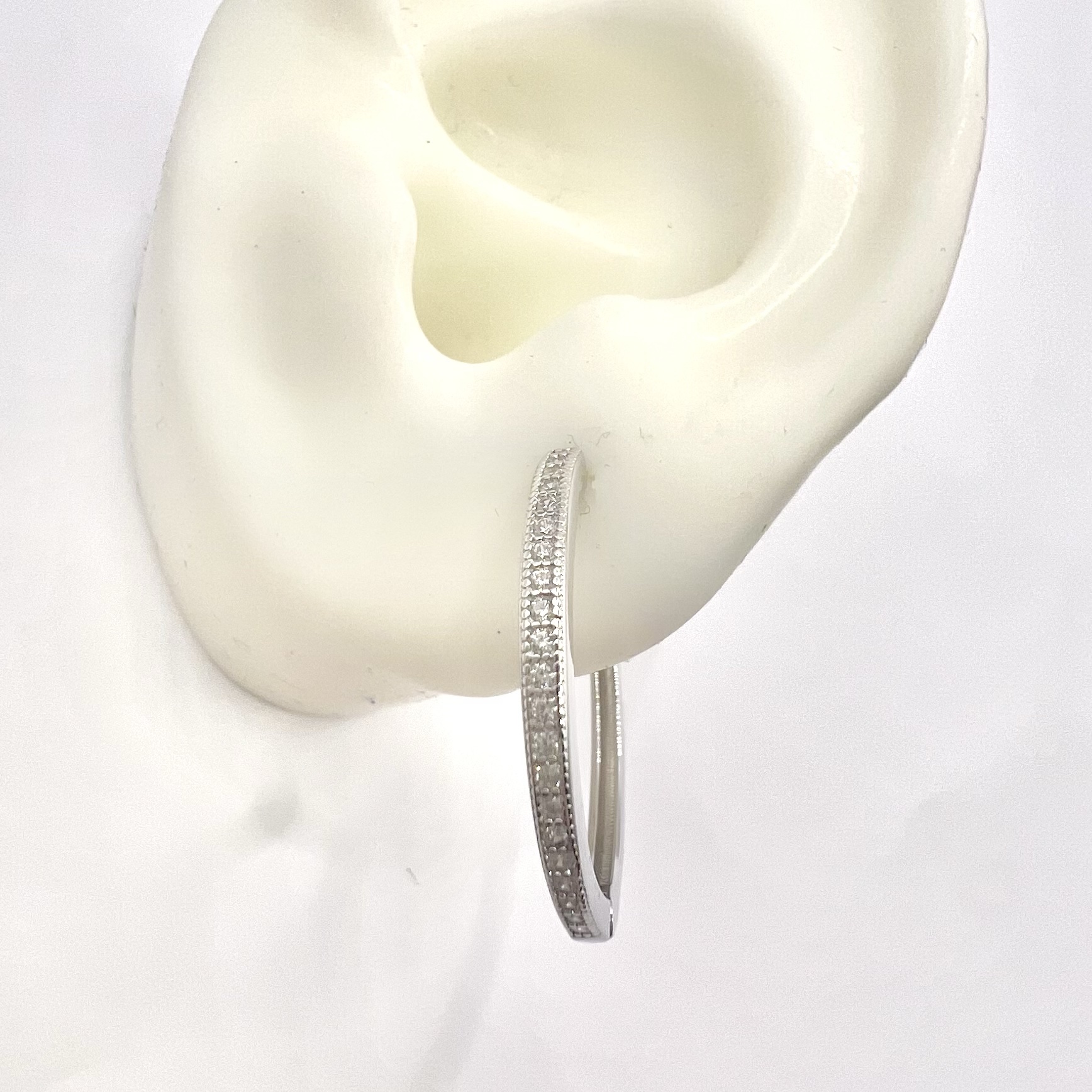 עגיל חישוק משובץ אבני זרקון מכסף אמיתי 925 מגיע בשתי גדלים