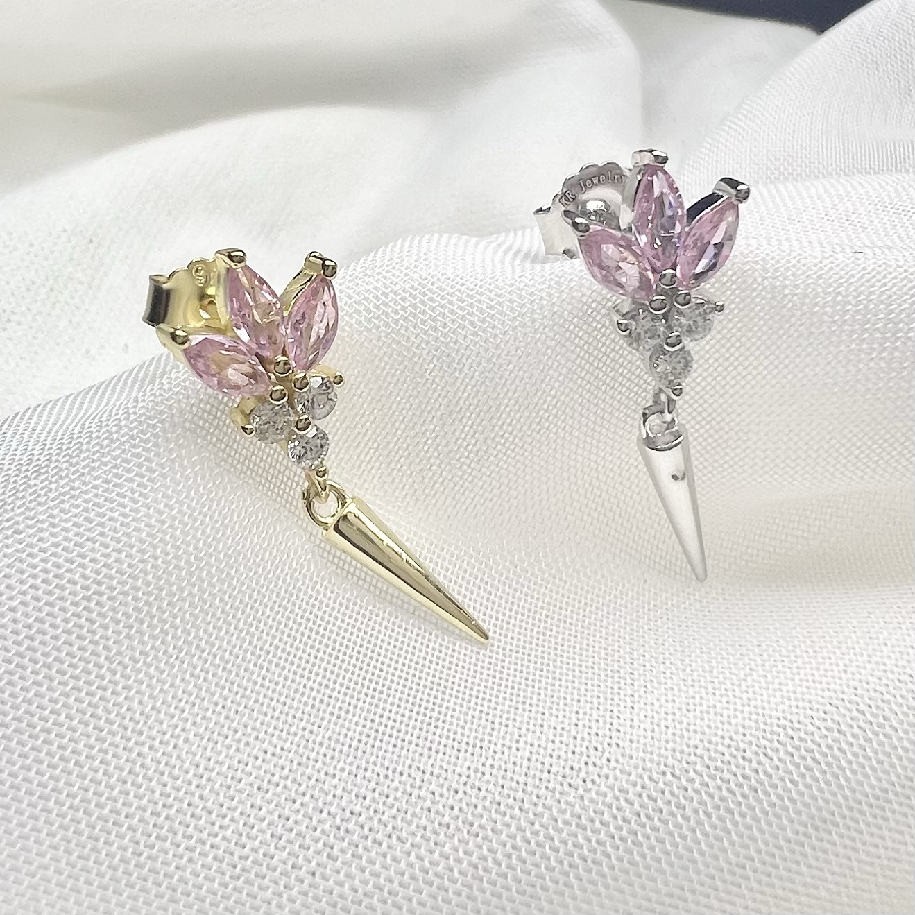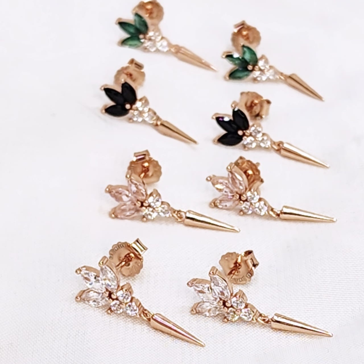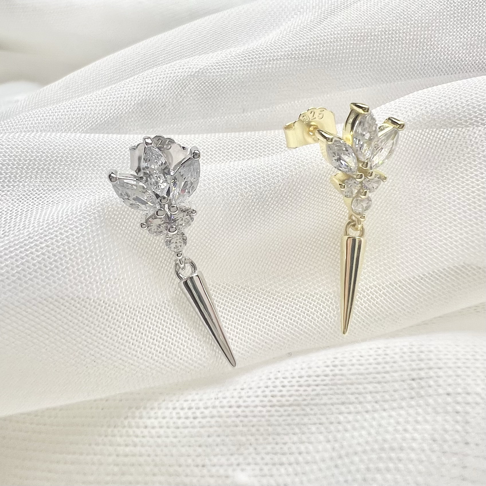 עגיל צמוד משובץ אבני זרקון בצורת פרח עם חץ שקוף נופל מכסף אמיתי 925