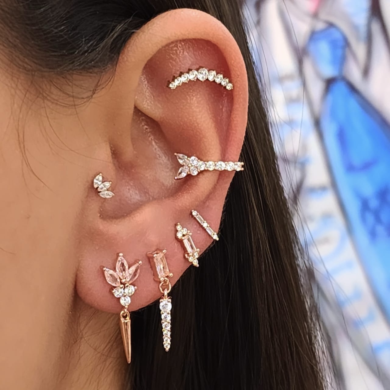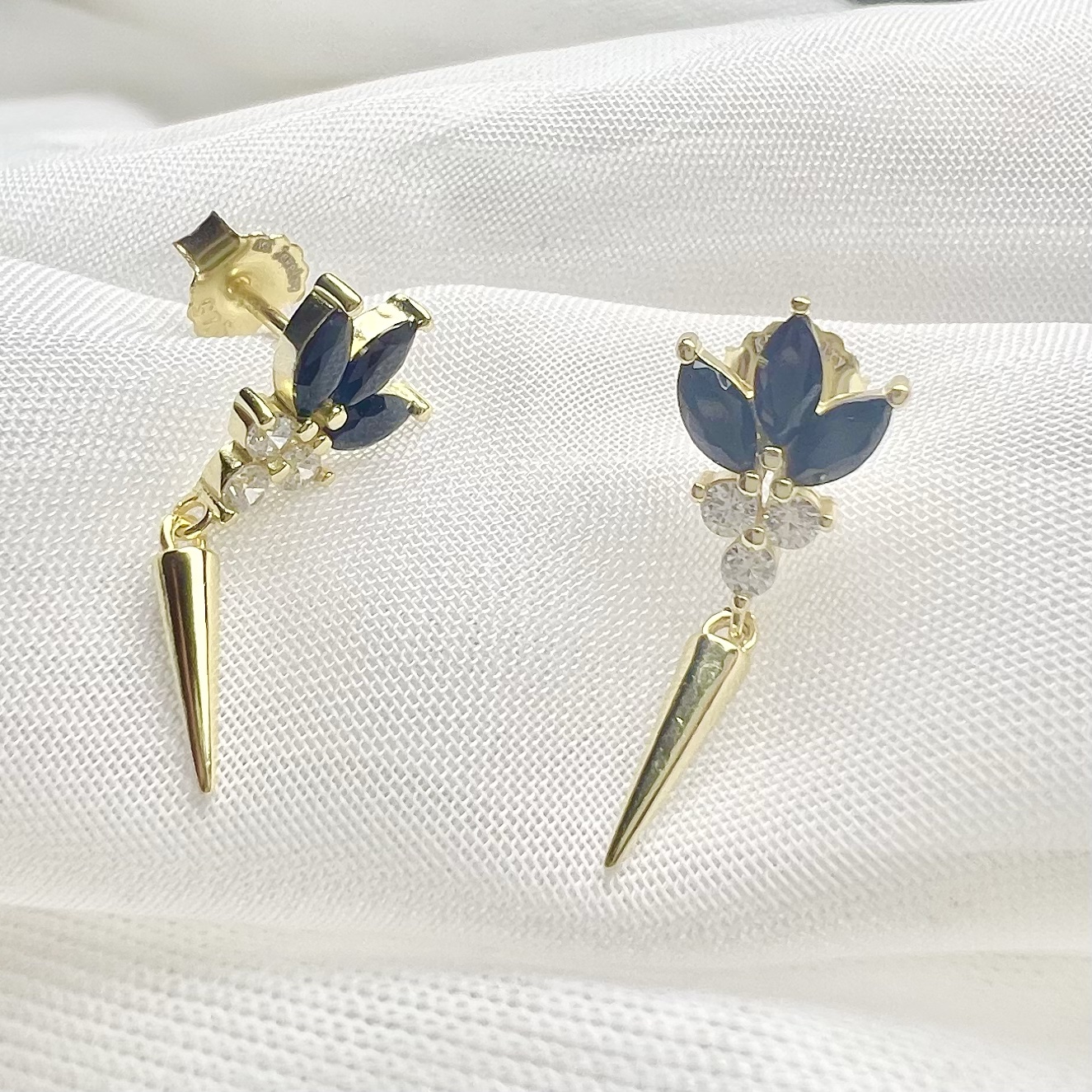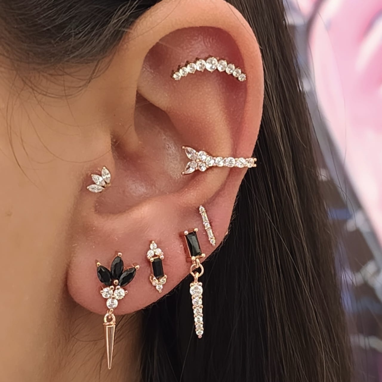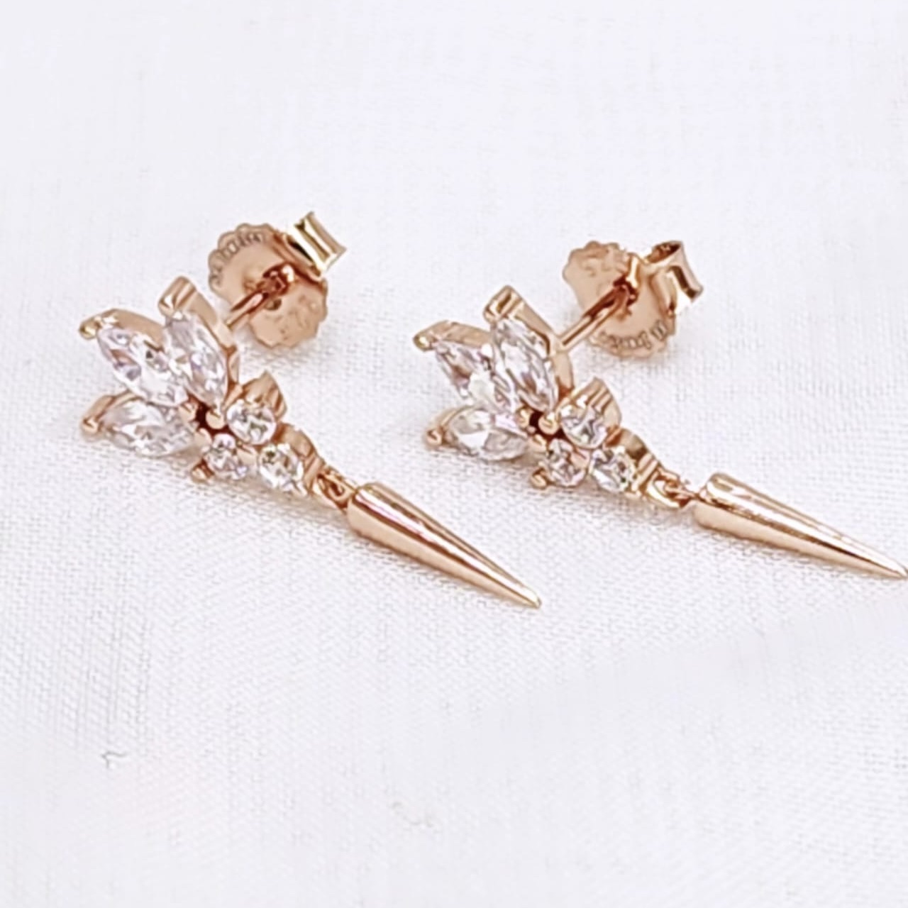 עגיל צמוד משובץ אבני זרקון בצורת פרח עם חץ שקוף נופל מכסף אמיתי 925