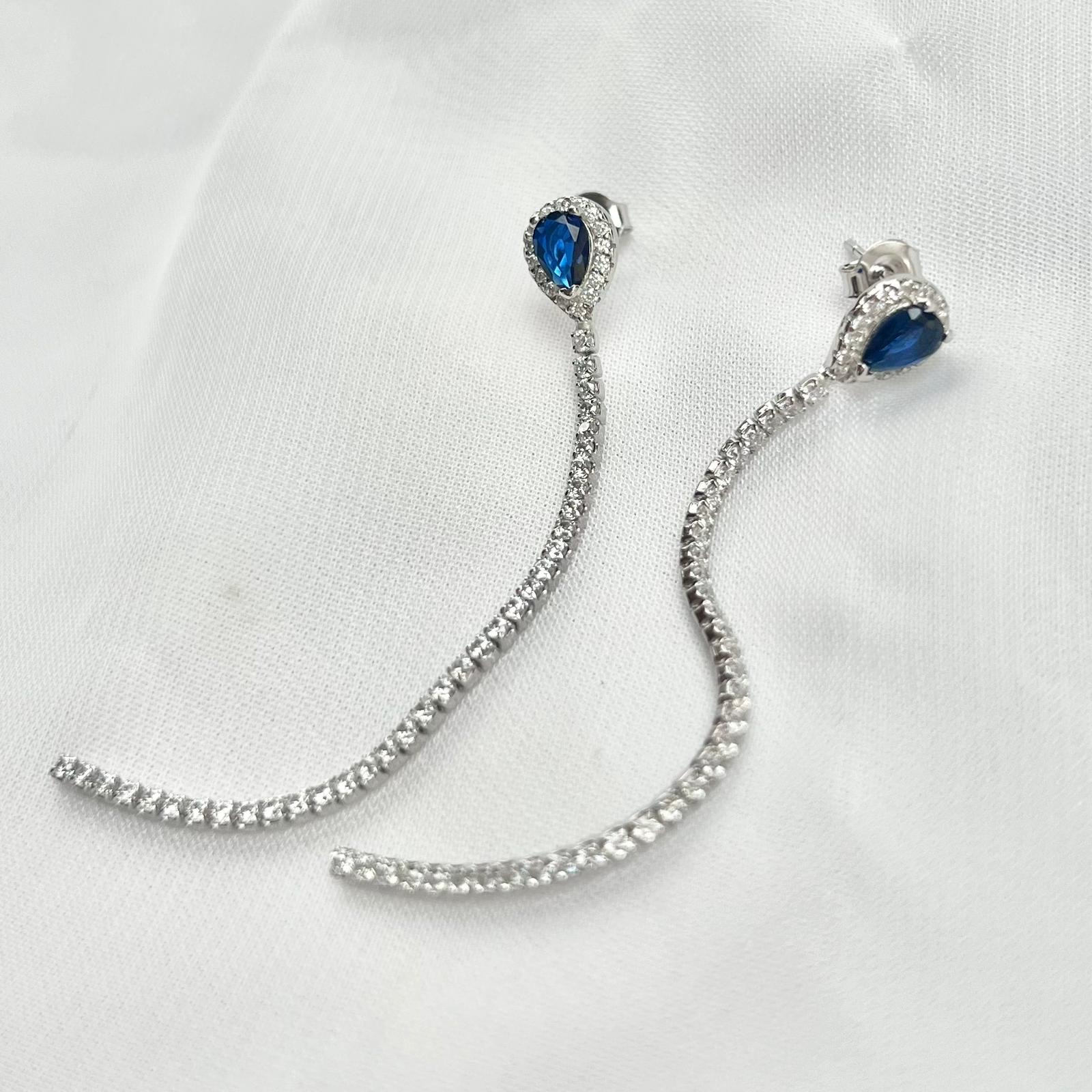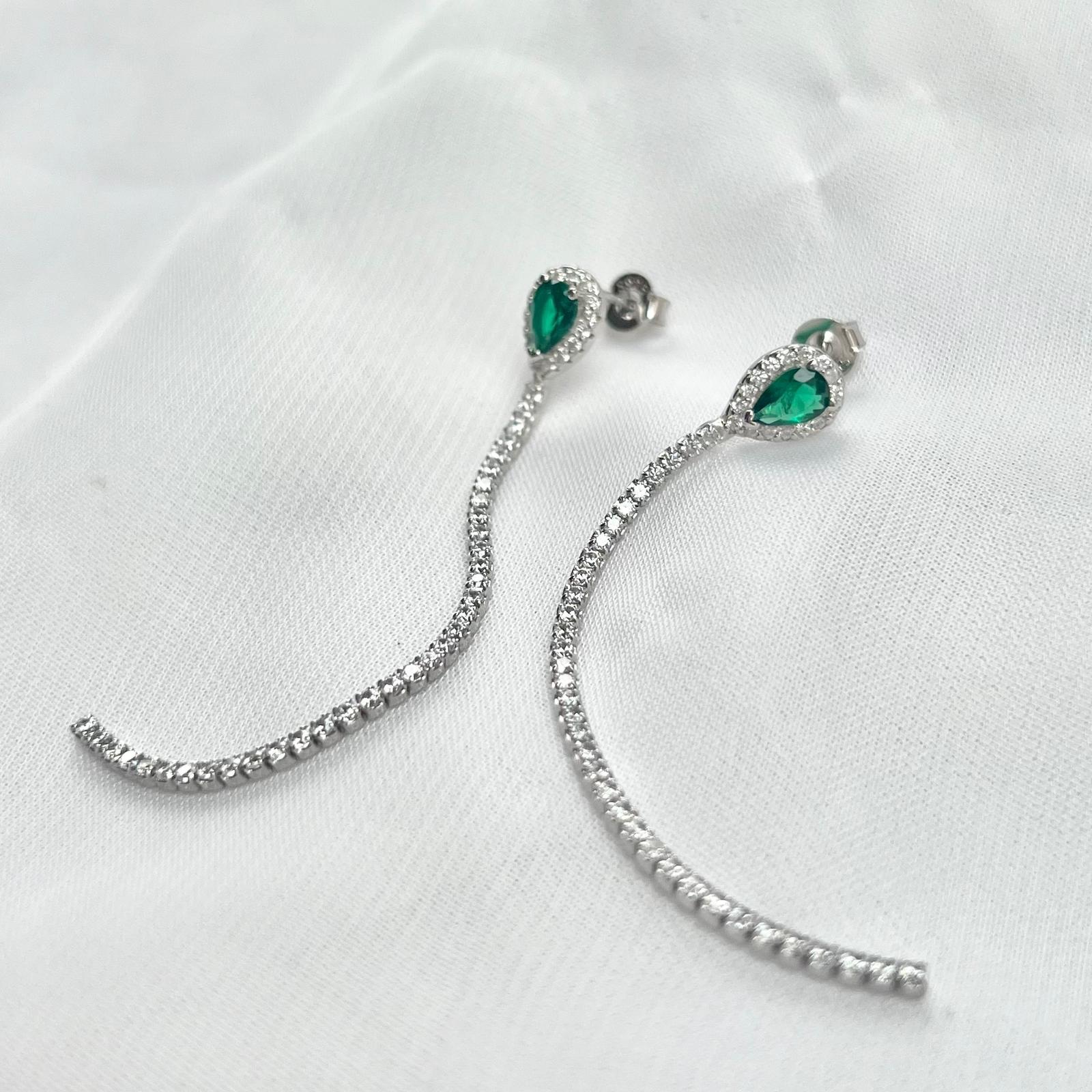 עגיל צמוד עם אבן זרקון בצורת טיפה משובץ מסביב עם טניס נופל מכסף אמיתי 925