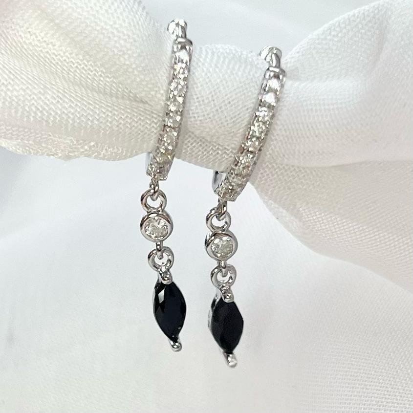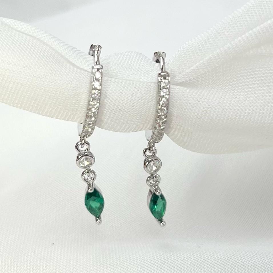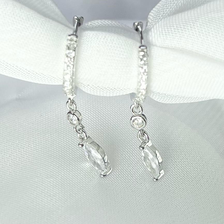 עגיל חישוק משובץ אבני זרקון עם שתי אבנים נופלים אחד עגול ואחד בצורת טיפה במגוון צבעים מכסף אמיתי 925