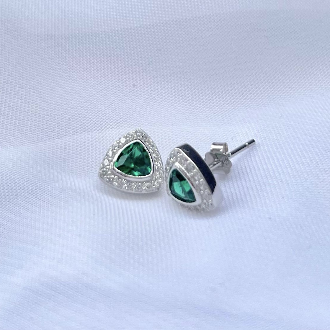 עגיל צמוד משובץ אבן זרקון משולשת במבחר צבעים משובצת מסביב מכסף אמיתי 925