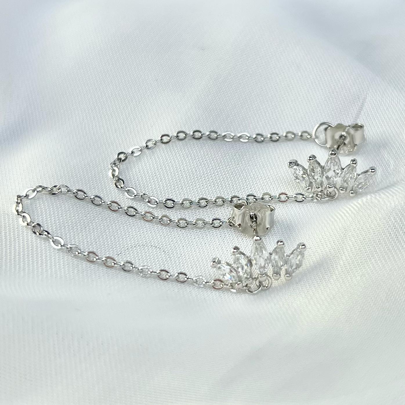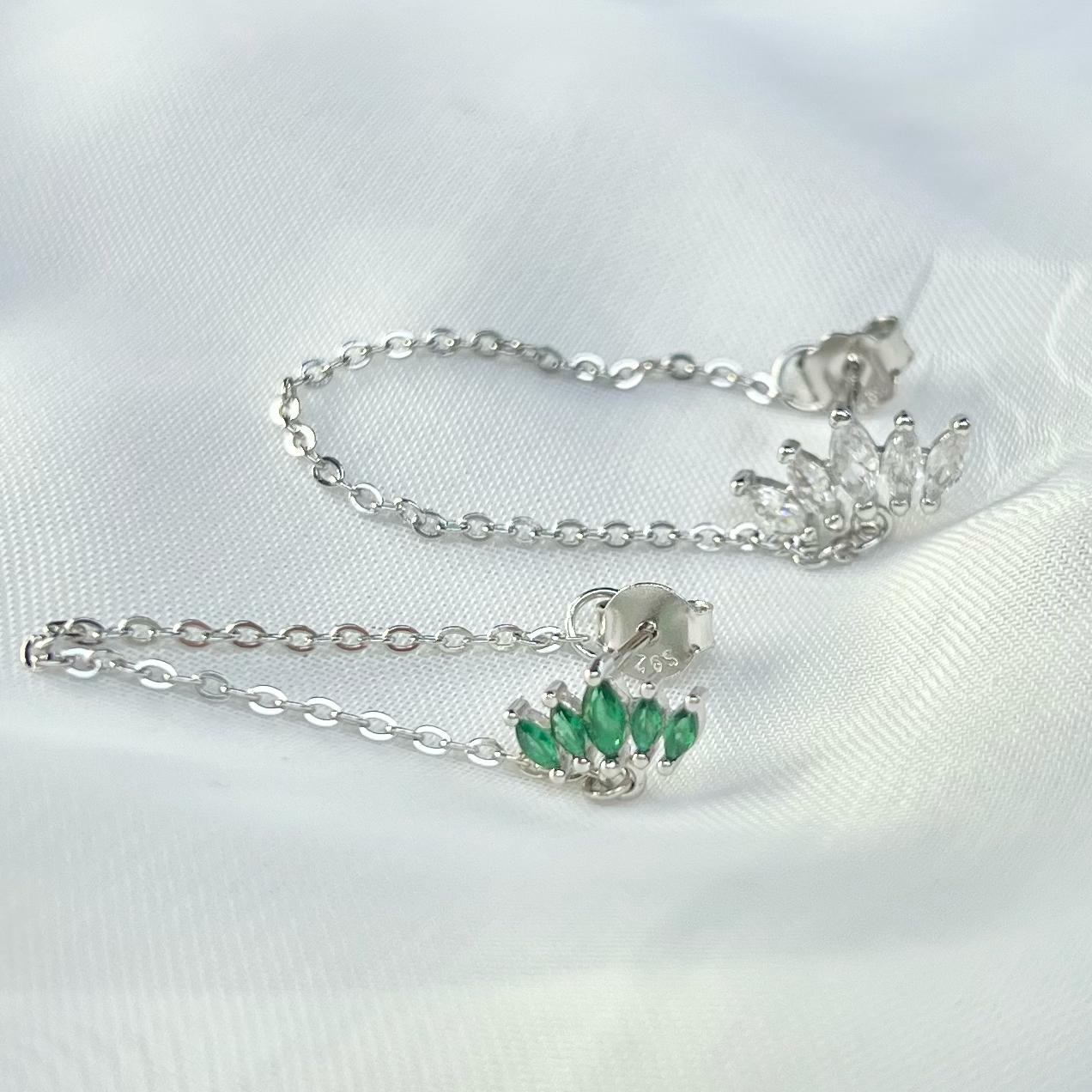 עגיל צמוד עם שורת אבני זרקון בצורת לוטוס במגוון צבעים עם שרשרת נופלת מכסף אמיתי 925