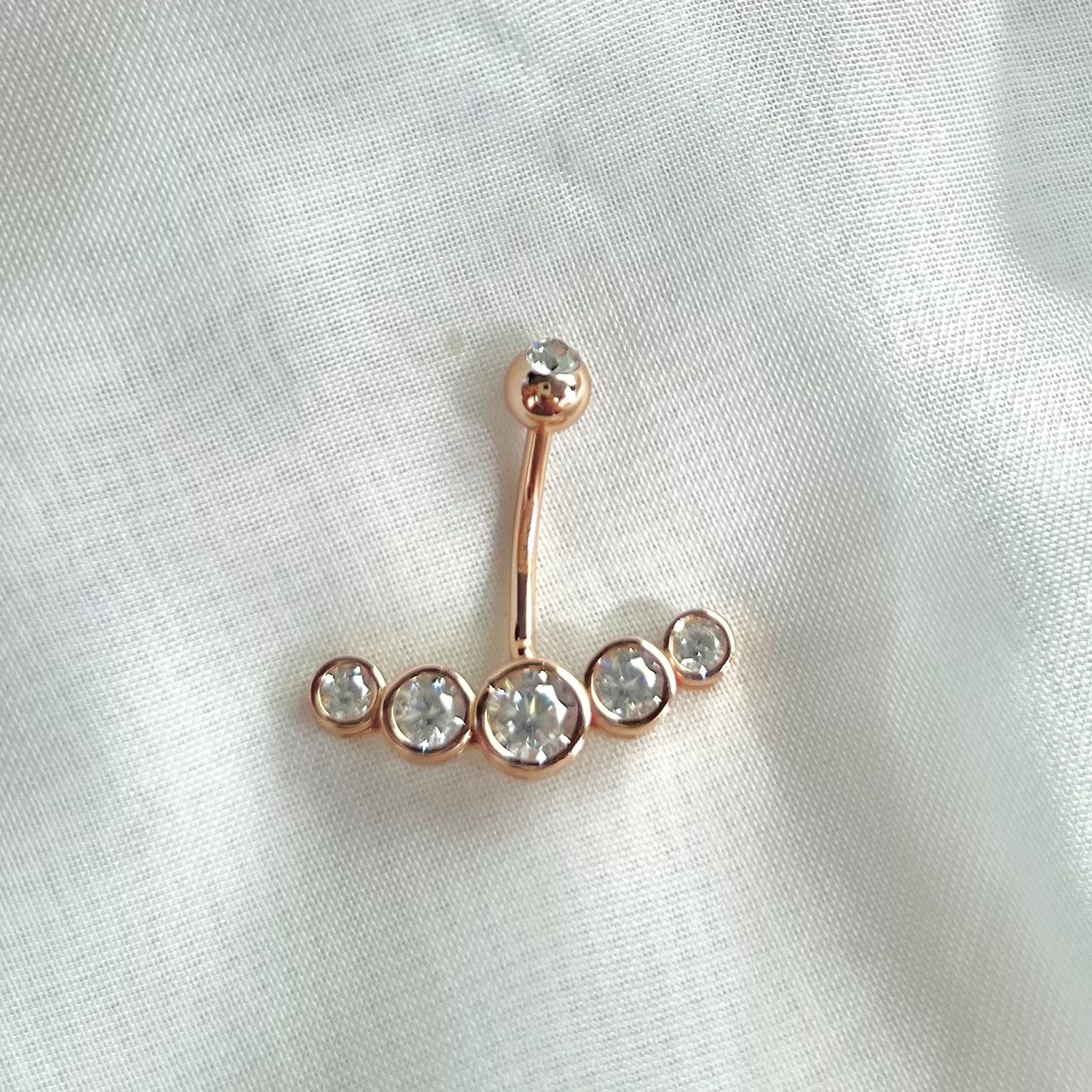 עגיל לתבור עם סגירה מסובבת עם אבן זרקון עגולה בסוגר ובעגיל 5 אבני זרקון עגולות מדורגות מטיטניום