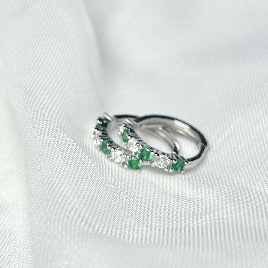 עגיל חישוק משובץ אבני מקרון במגוון צבעים מכסף אמיתי 925