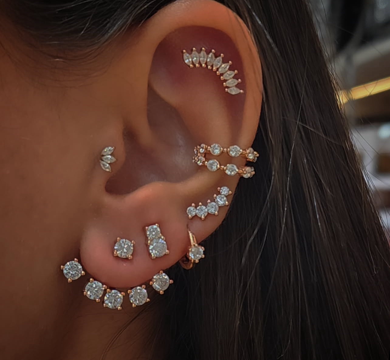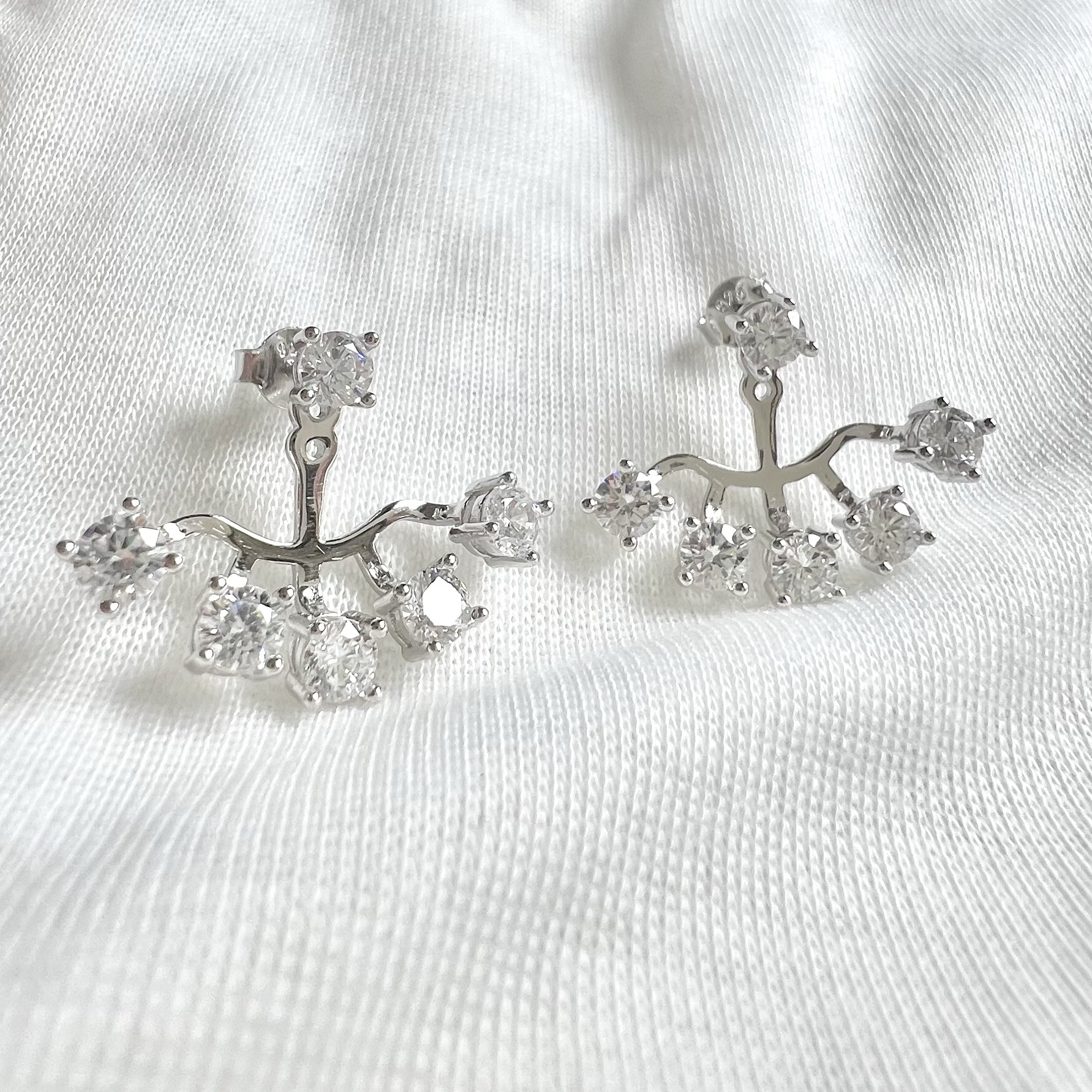 עגיל צמוד משובץ אבני זרקון מכסף אמיתי 925