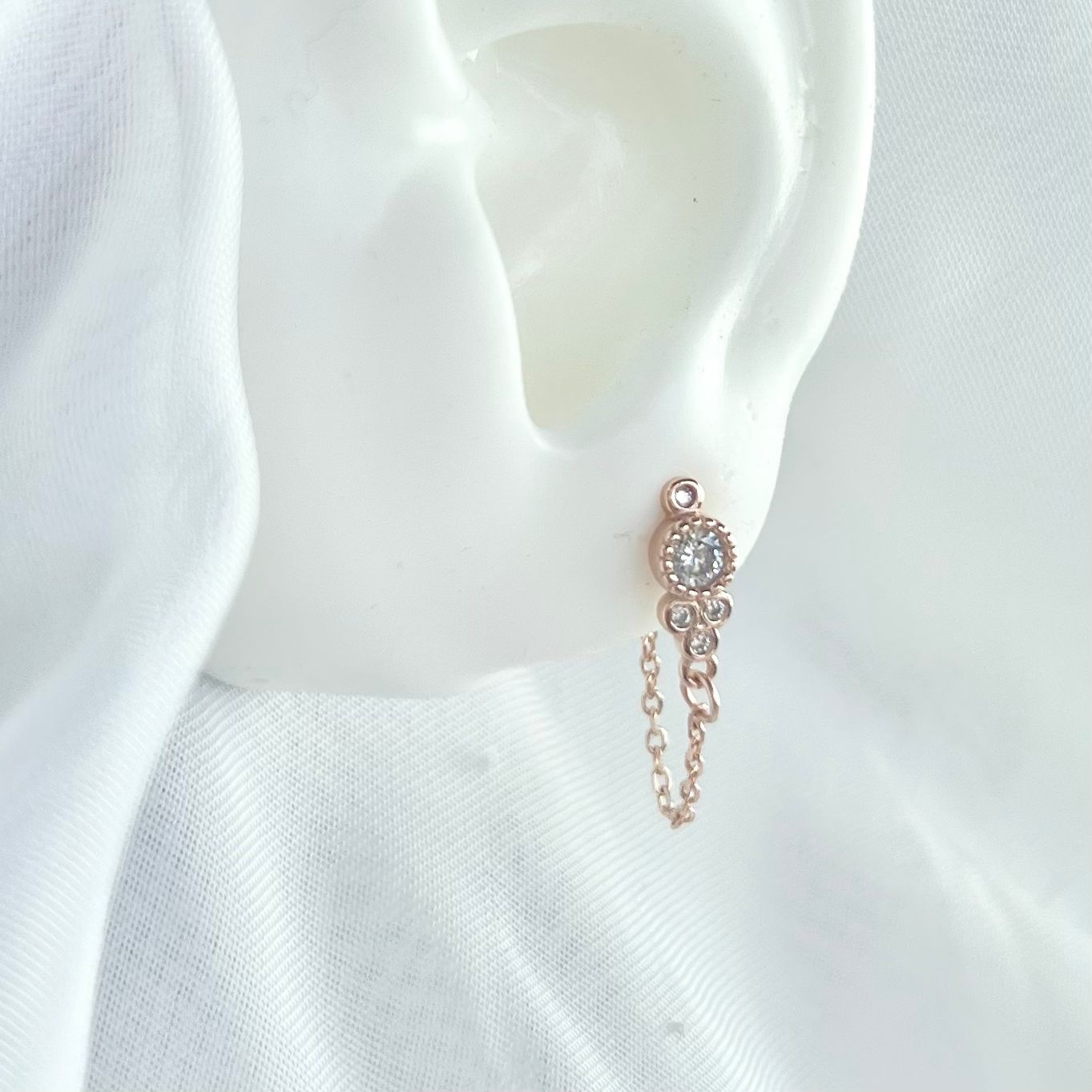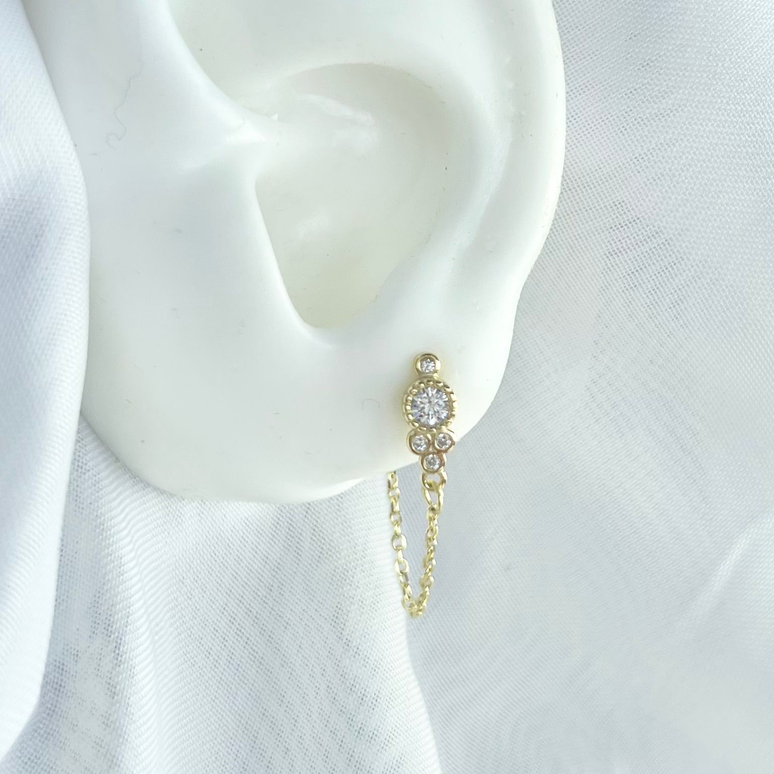 עגיל נופל צמוד משובץ אבני זרקון עגולות מדורגות נופלות מכסף אמיתי 925