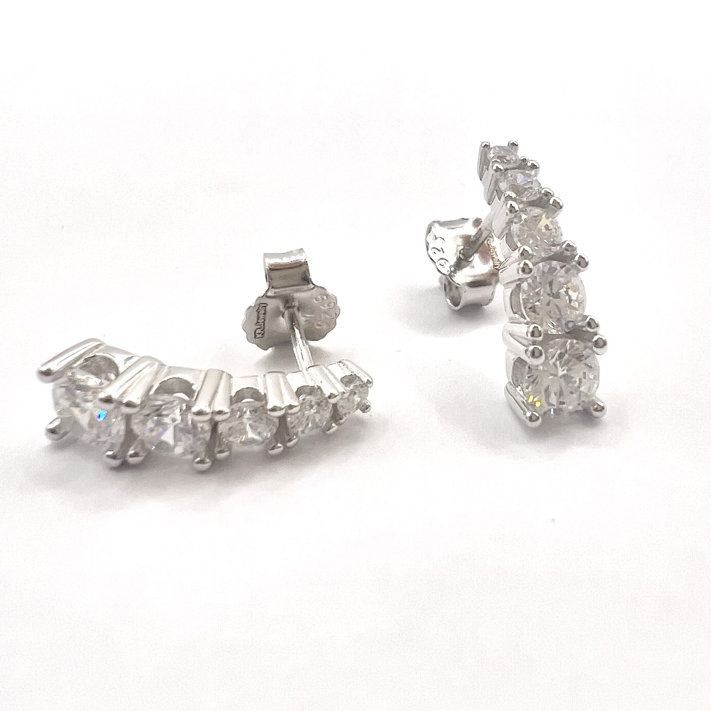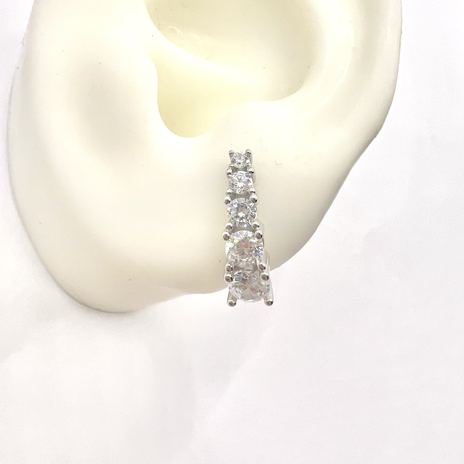 עגיל צמוד משובץ אבני זרקון מדורגות מהקטן לגדול מכסף אמיתי 925