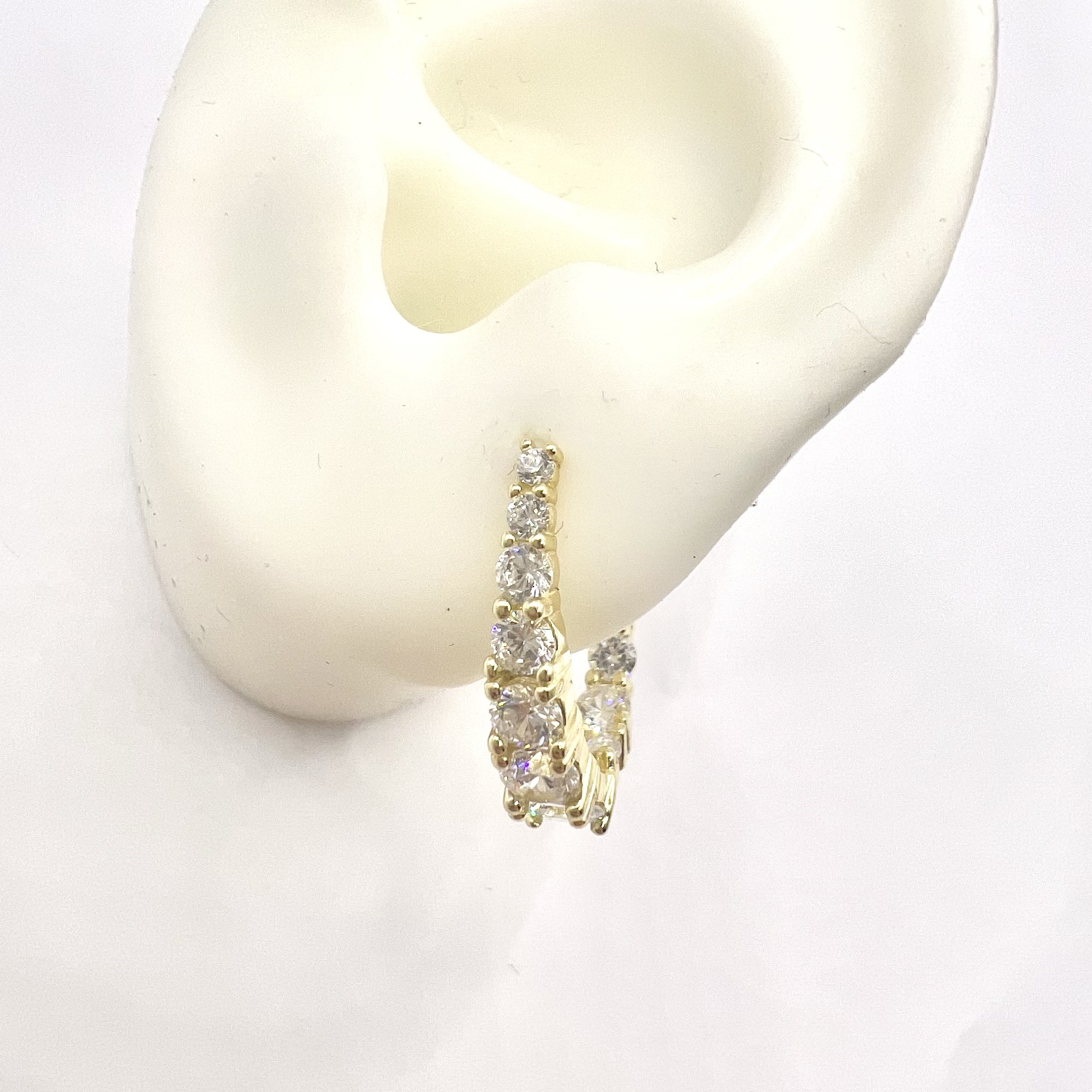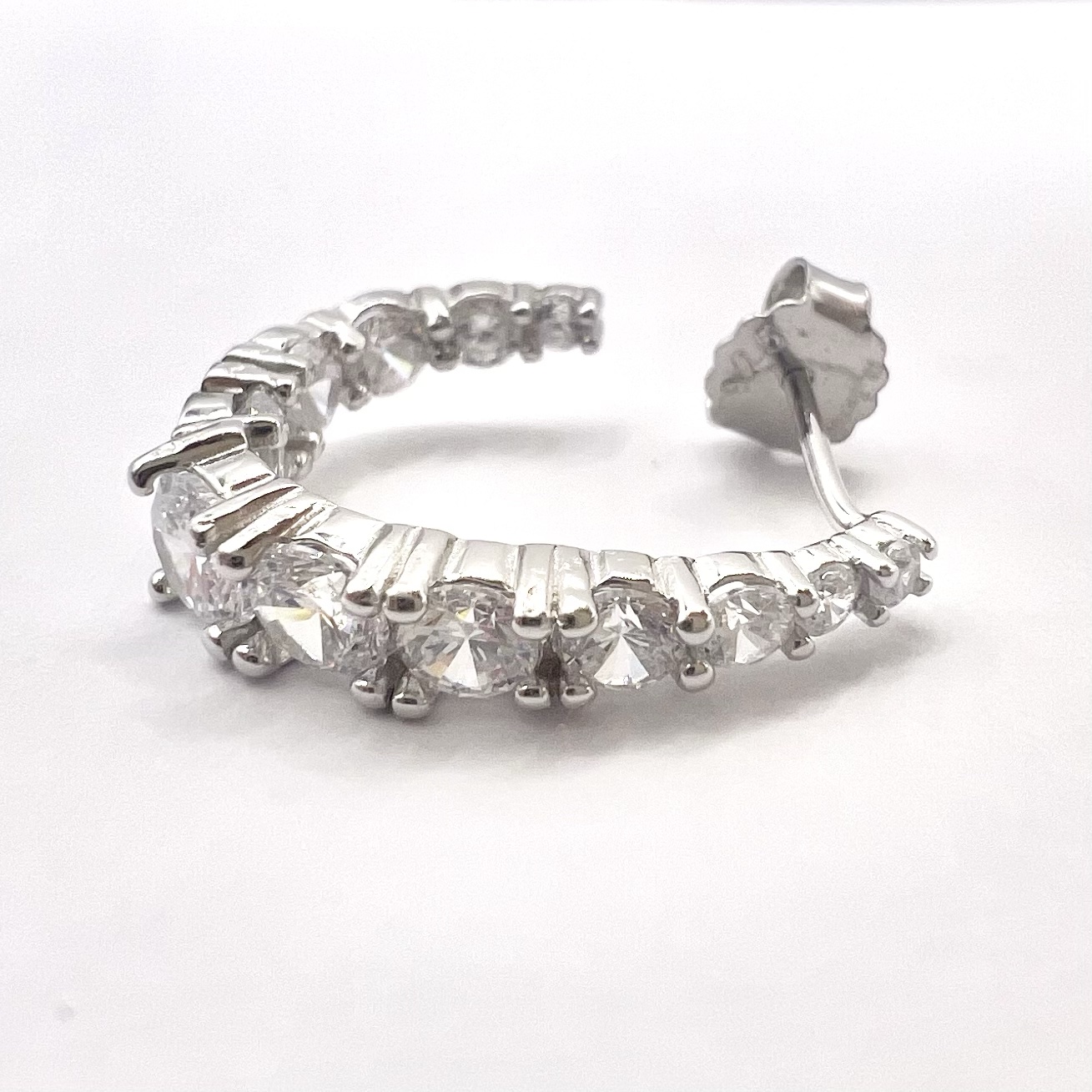 עגיל צמוד משובץ אבני זרקון מדורגות מהקטן לגדול בדימוי חישוק מכסף אמיתי 925