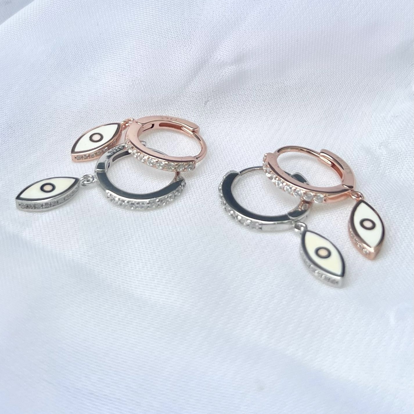 עגיל חישוק משובץ אבני זרקון עם תליון עין מכסף אמיתי 925
