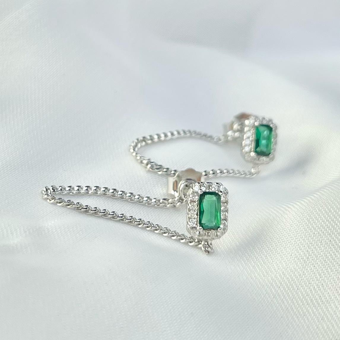 עגיל צמוד עם אבן גורמט מלבנים משובצת מסביב במגוון צבעים עם גורמט נופל מכסף אמיתי 925