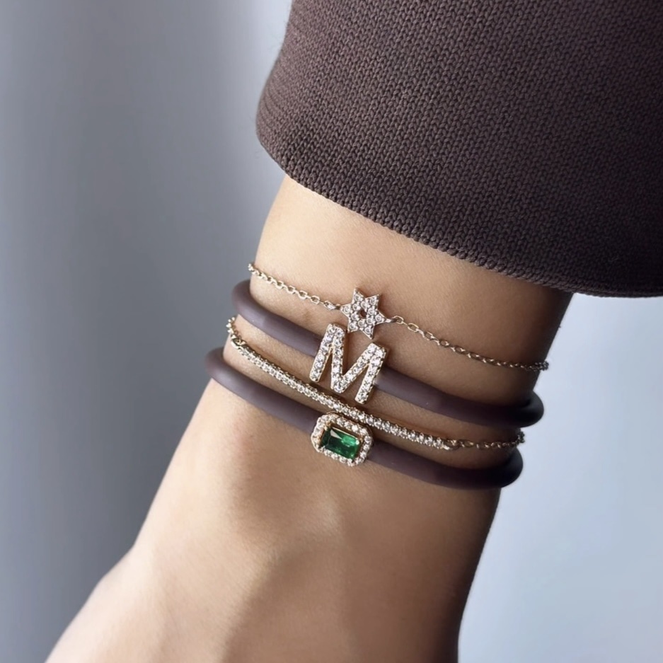 צמיד סיליקון מגומי חזק ואיכותי עם אלמנט אבן משובצת מסביב מכסף אמיתי 925