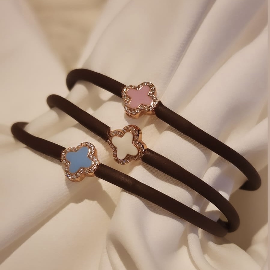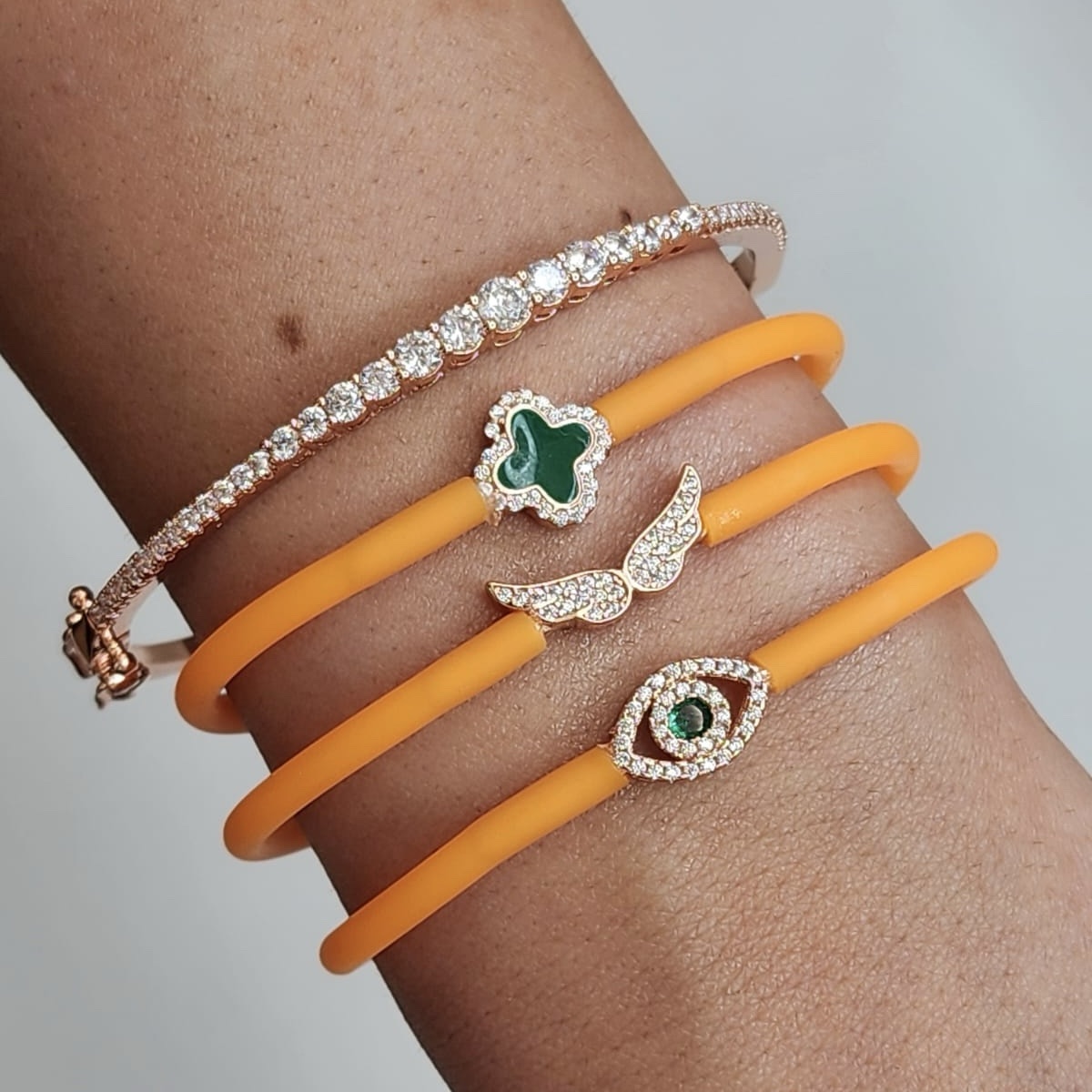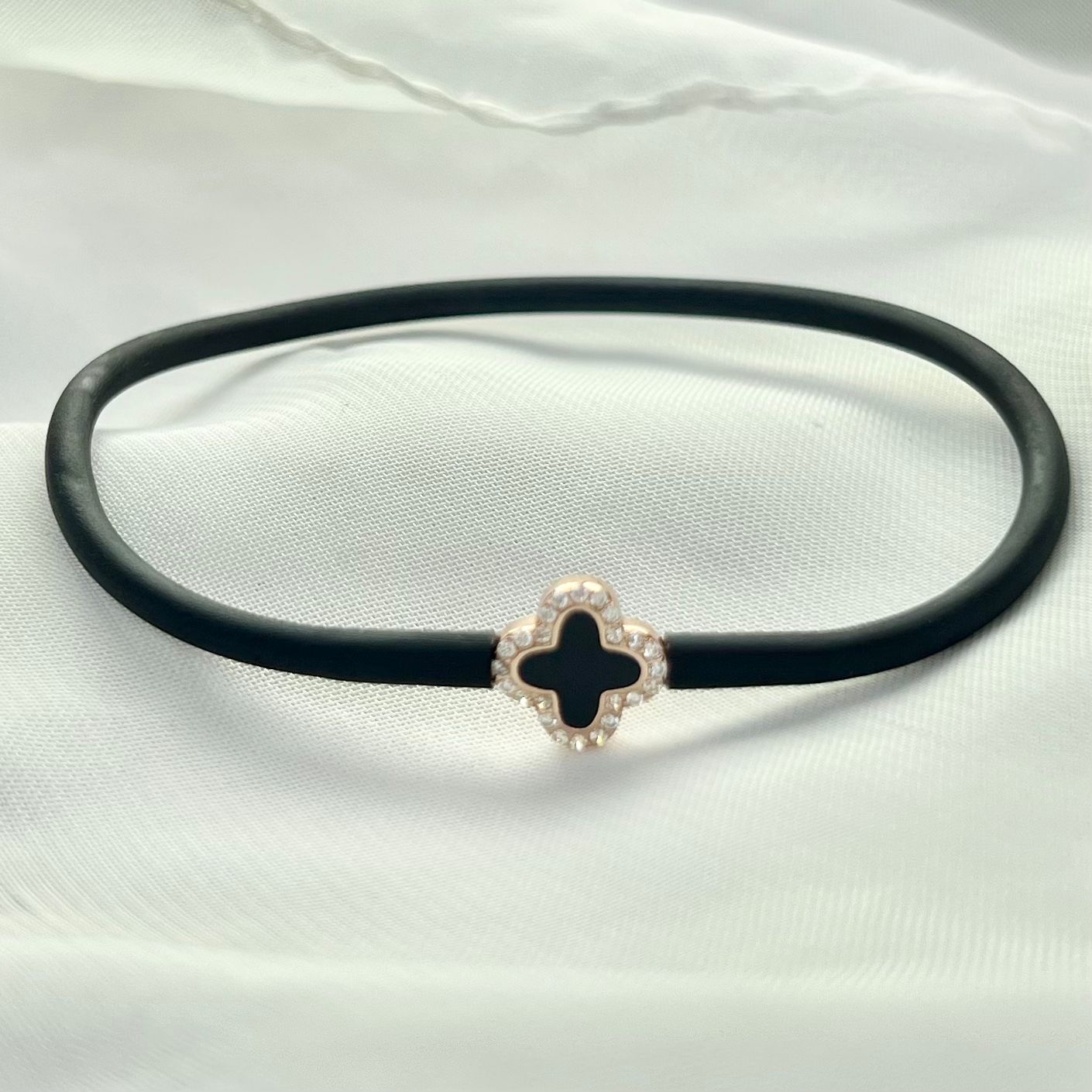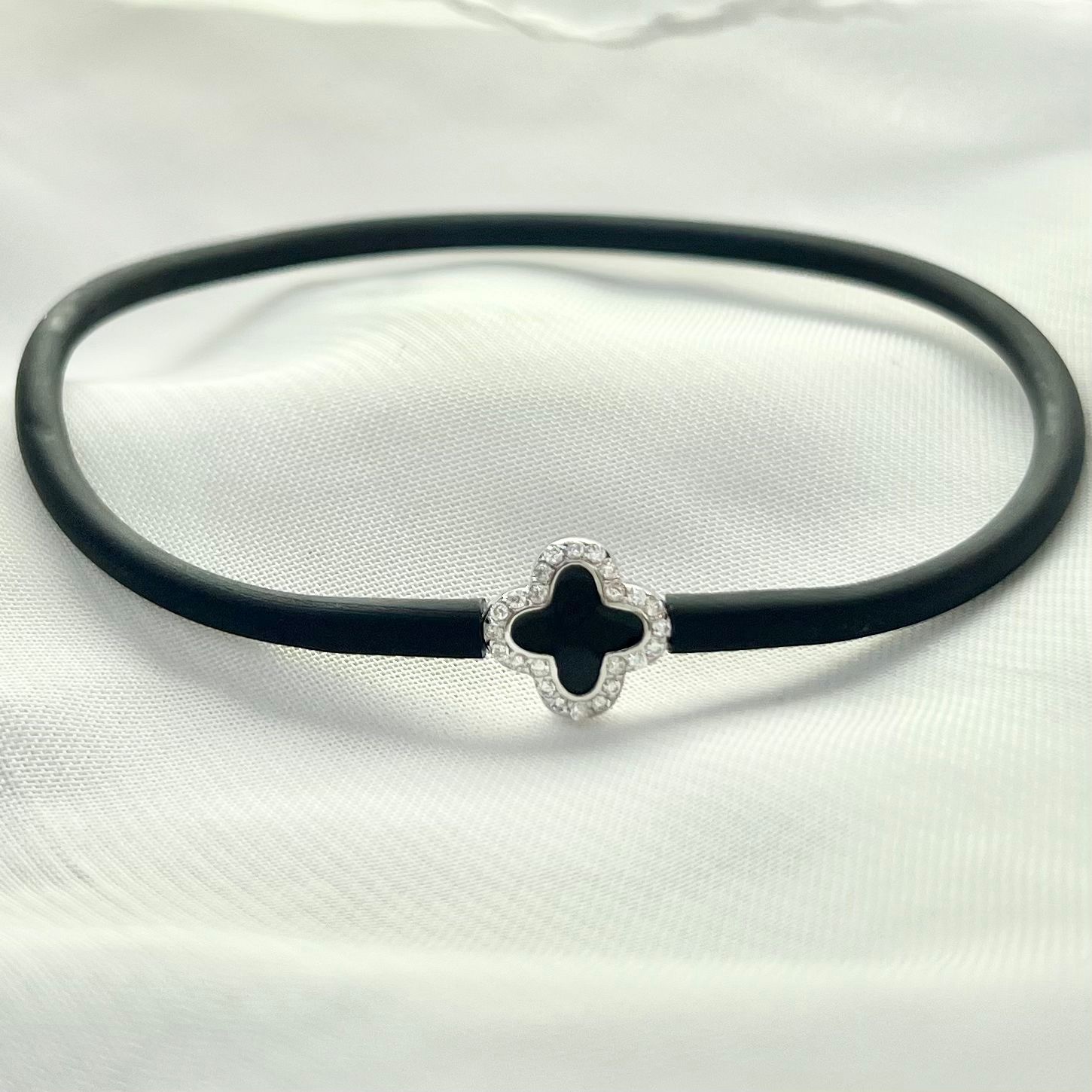 צמיד סיליקון מגומי חזק ואיכותי עם אלמנט פרח משובץ בקצוות מכסף אמיתי 925