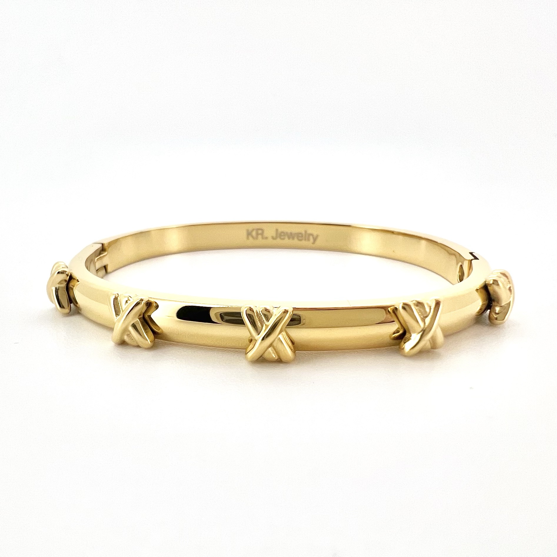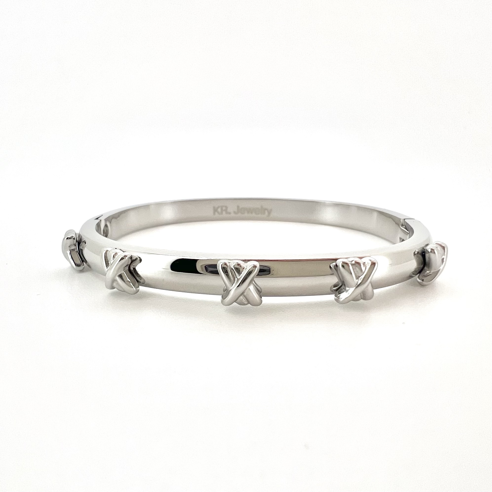 צמיד קשיח חלק עם עיצוב איקסים מרודיום איכותי
