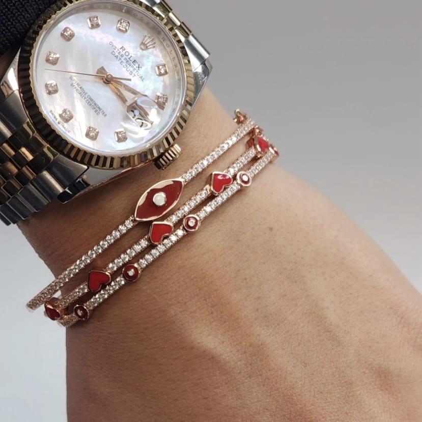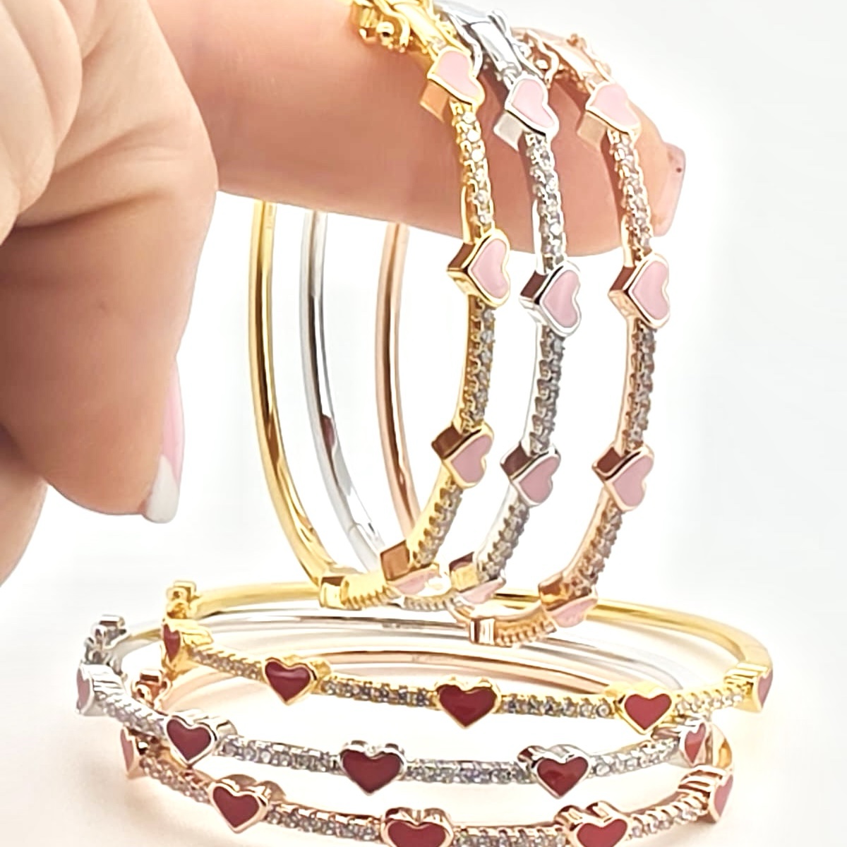 צמיד קשיח משובץ עם לבבות מרודיום איכותי