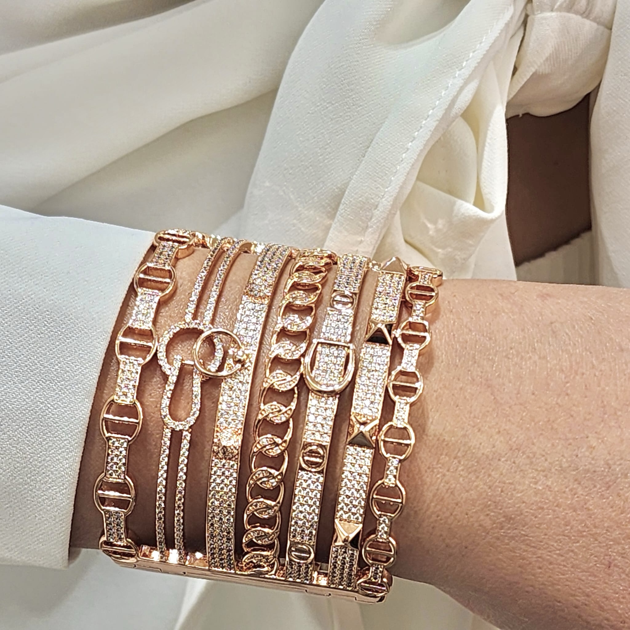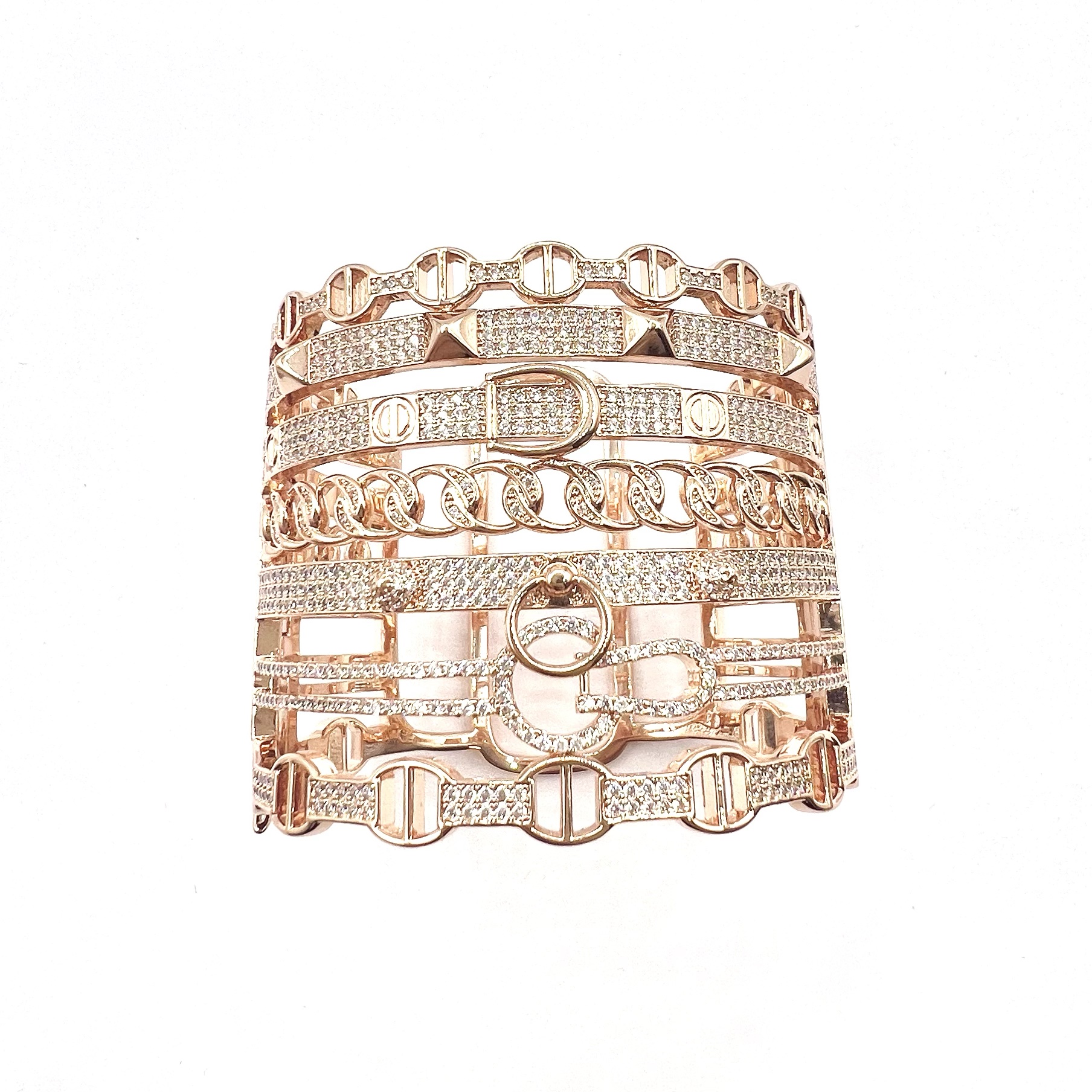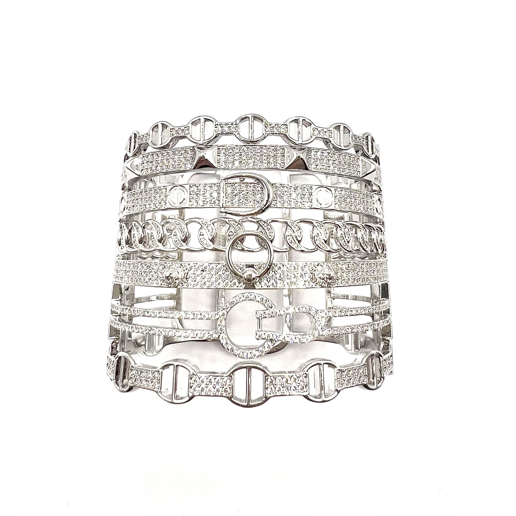צמיד קשיח משולב עם 7 צמידים מחוברים משובצים אבני זרקון מרודיום איכותי