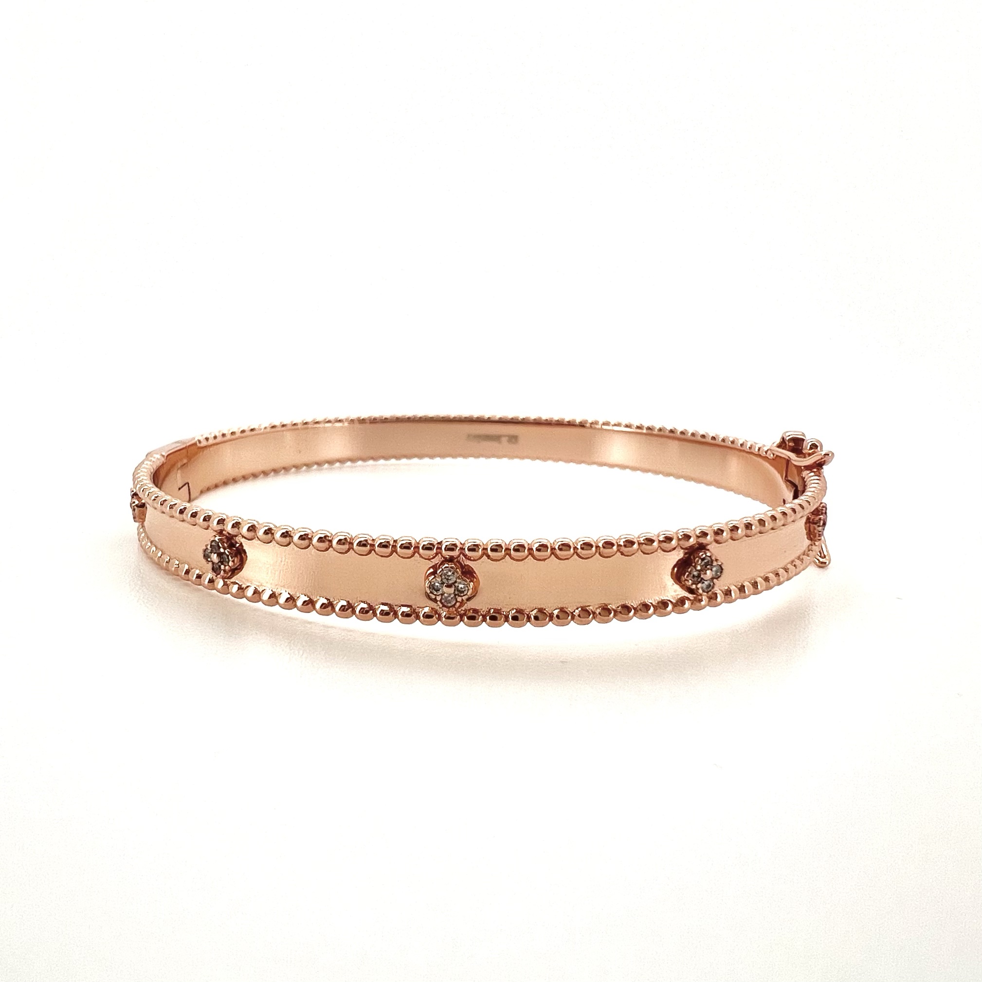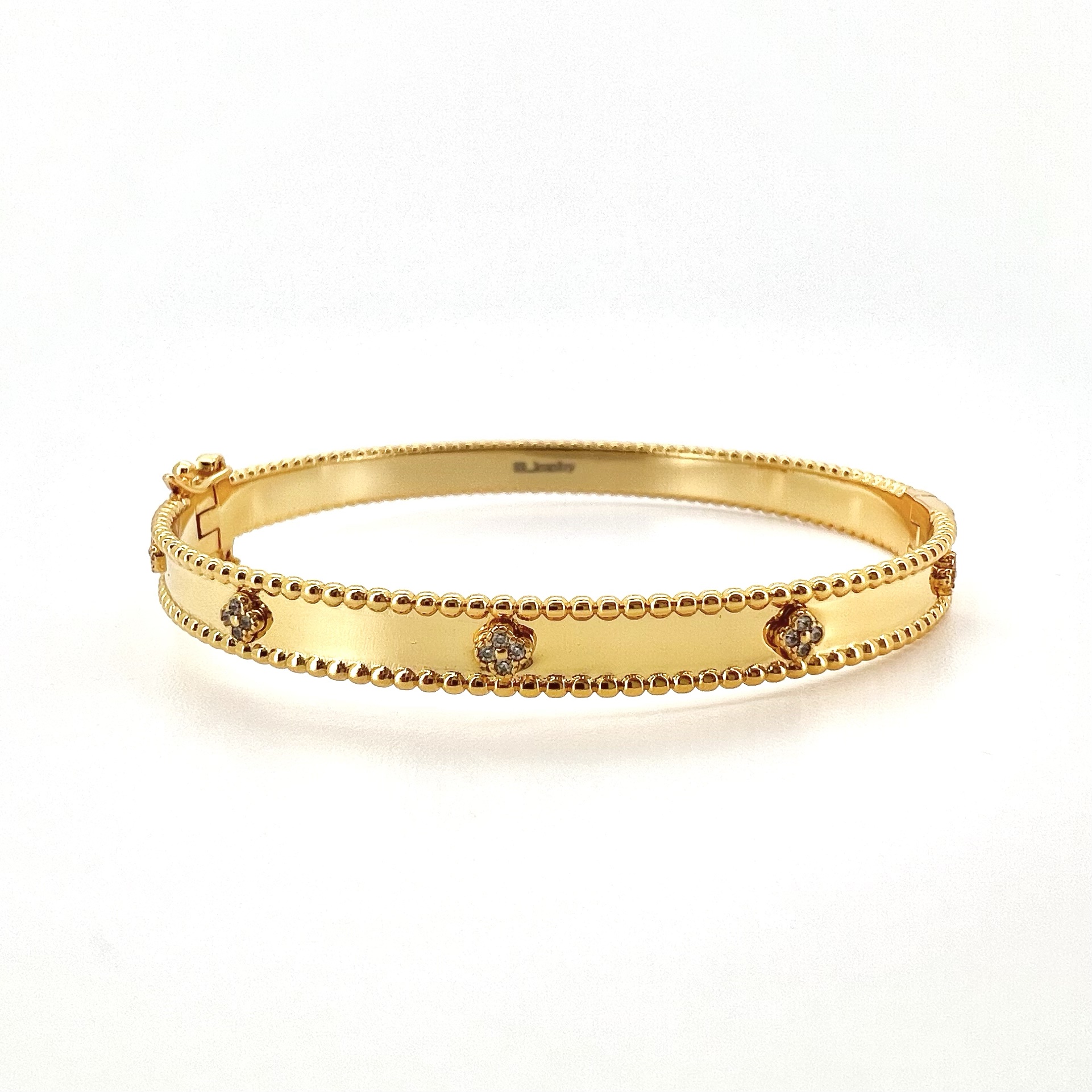 צמיד קשיח חלק משובץ אבני זרקון בצורת פרח מרודיום איכותי