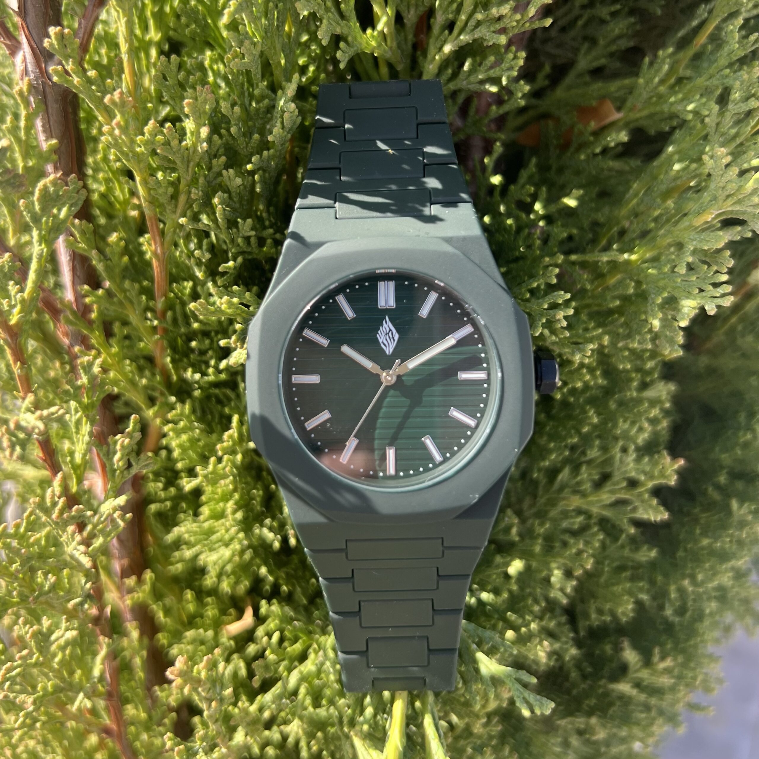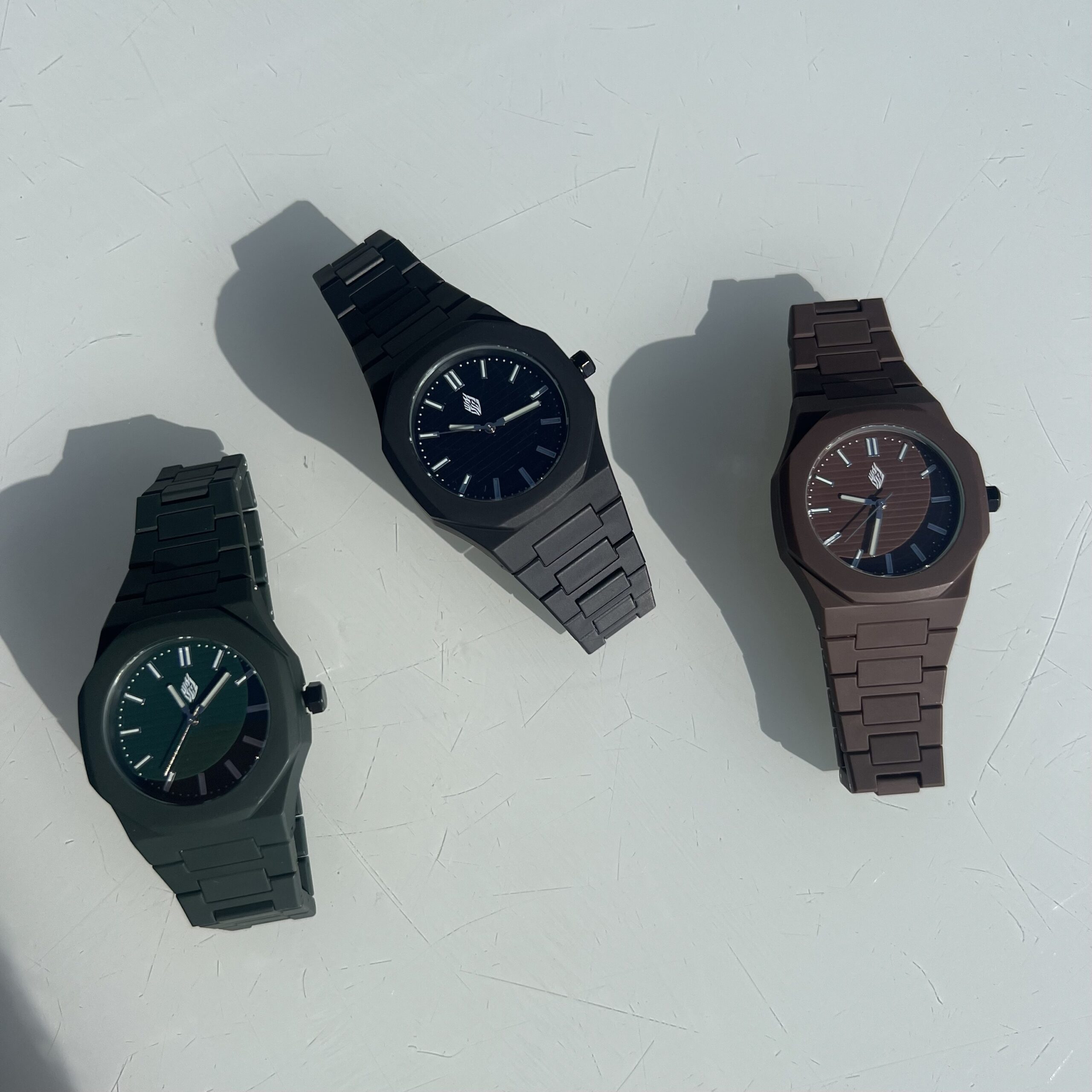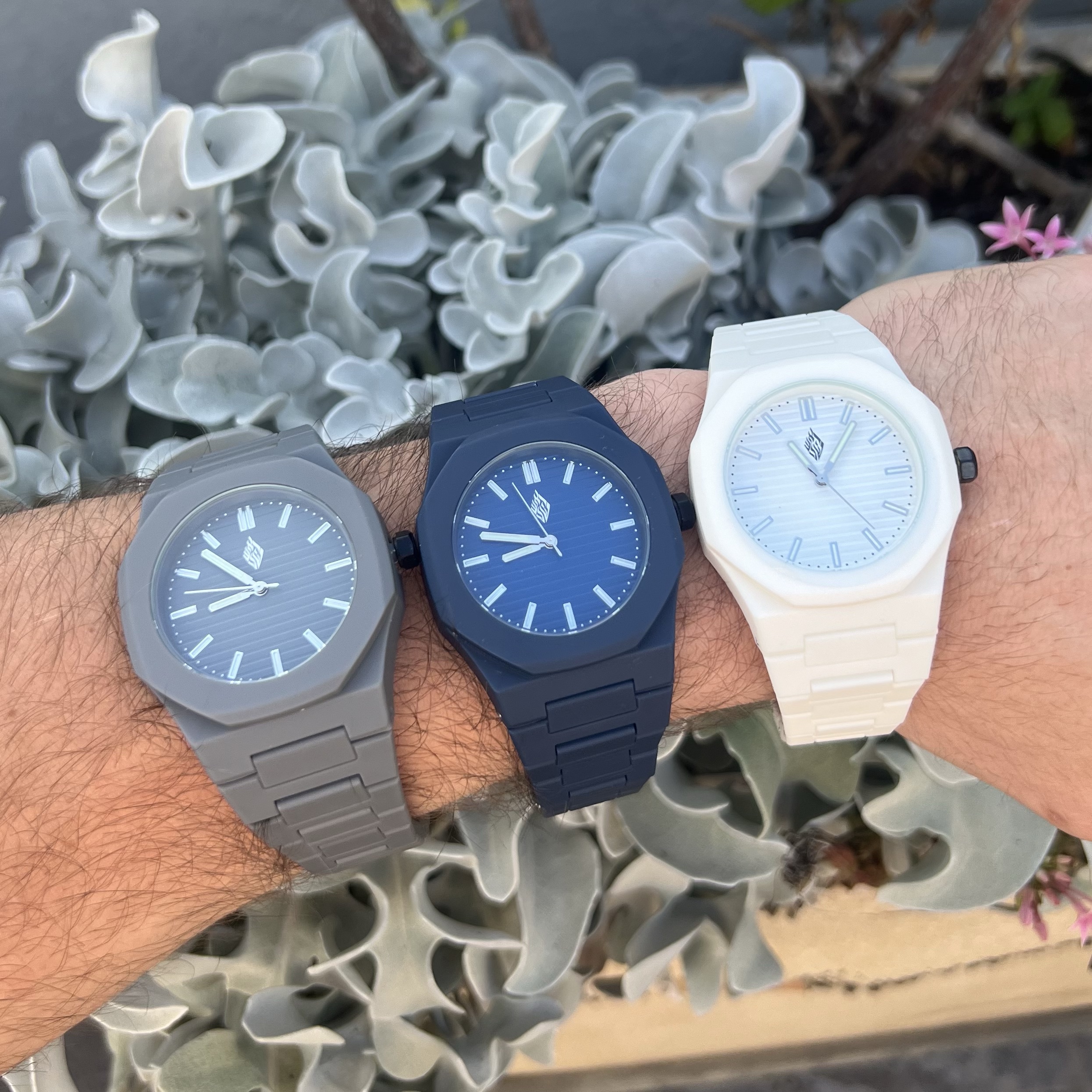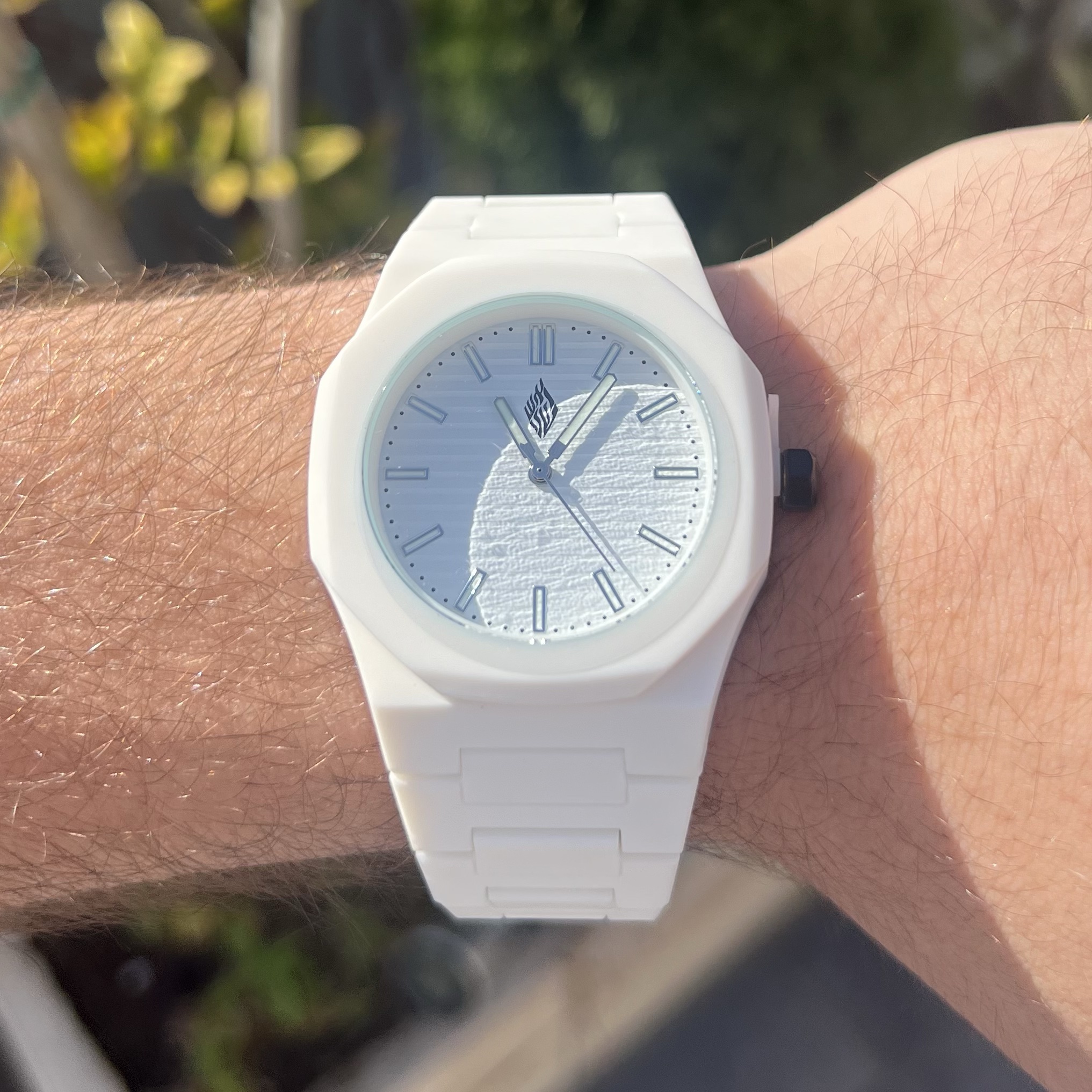 שעון לגבר רצועת פלסטיק איכותית עם לוח חלק ולוגו האש שלי