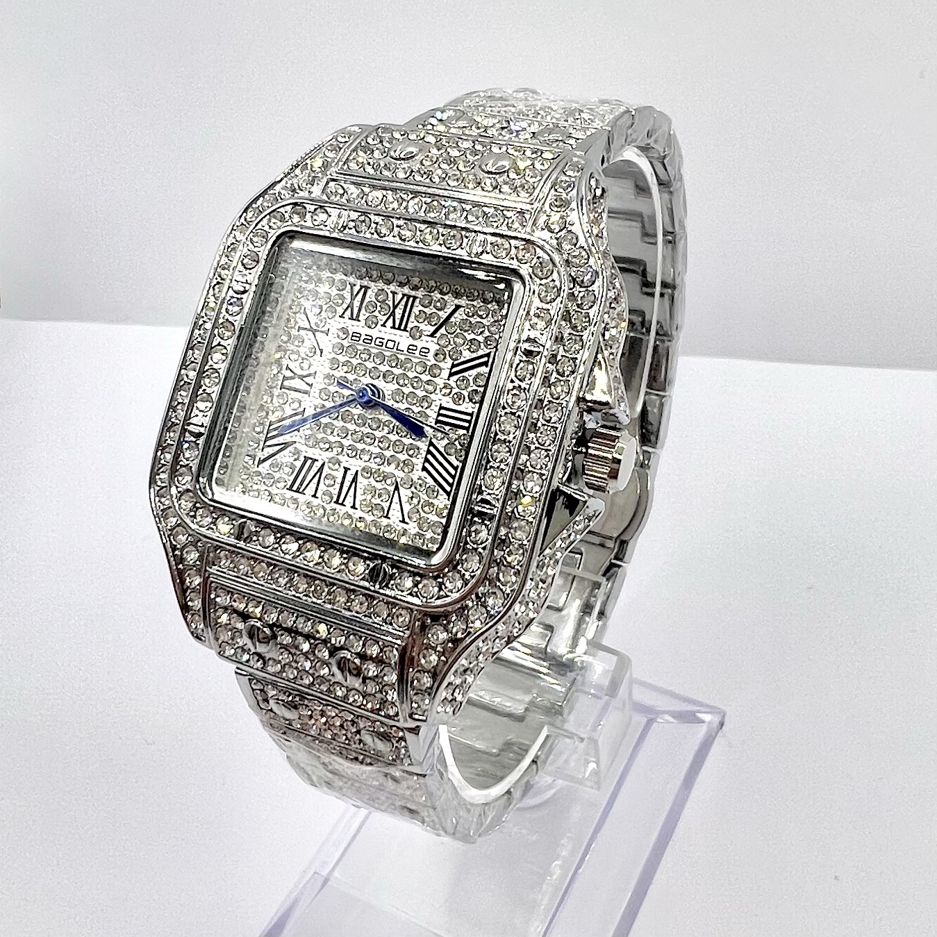 שעון משובץ כולו אבני זרקון עם אותיות יווניות