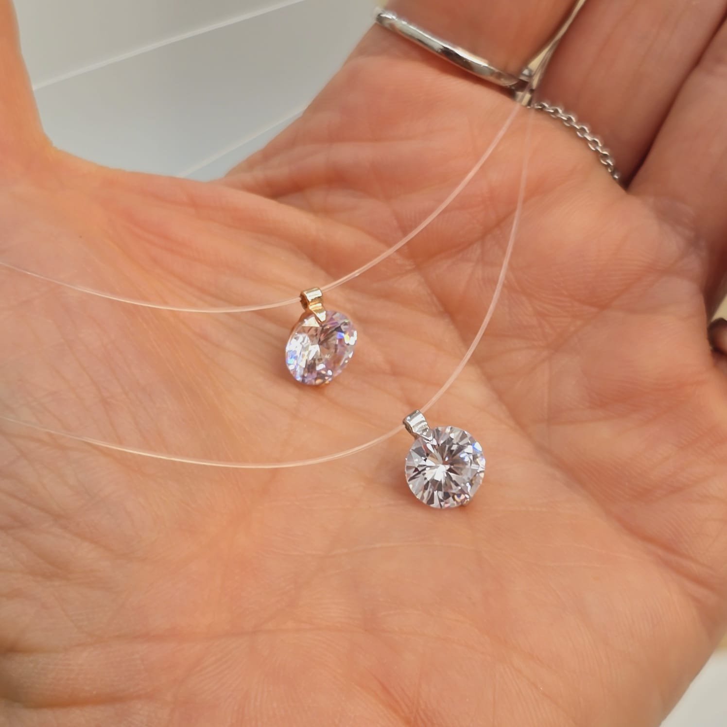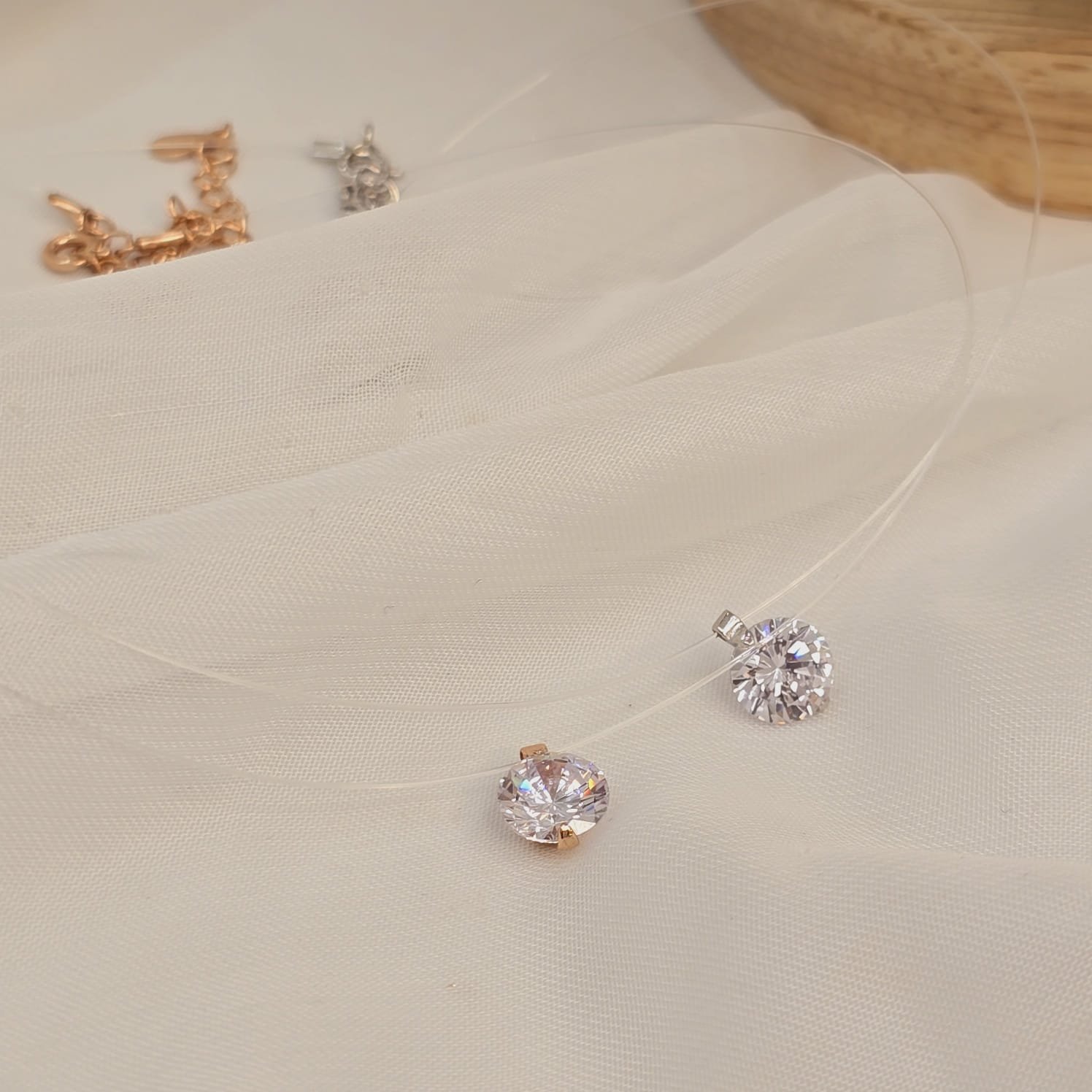 שרשרת חוט דייג חזק עם סוגר מכסף אמיתי +הארכה 5 ס”מ עם זרקון 7 מ”מ
