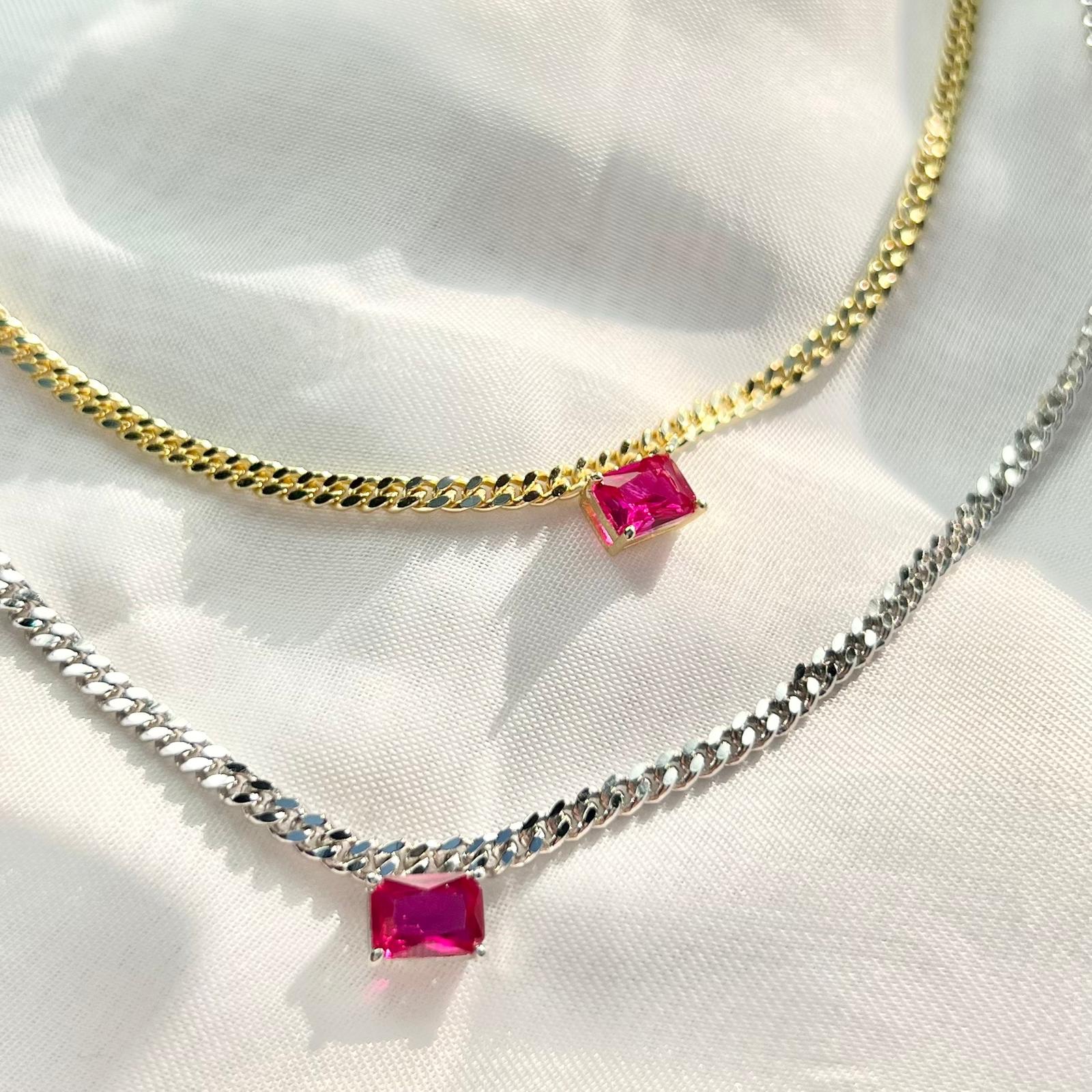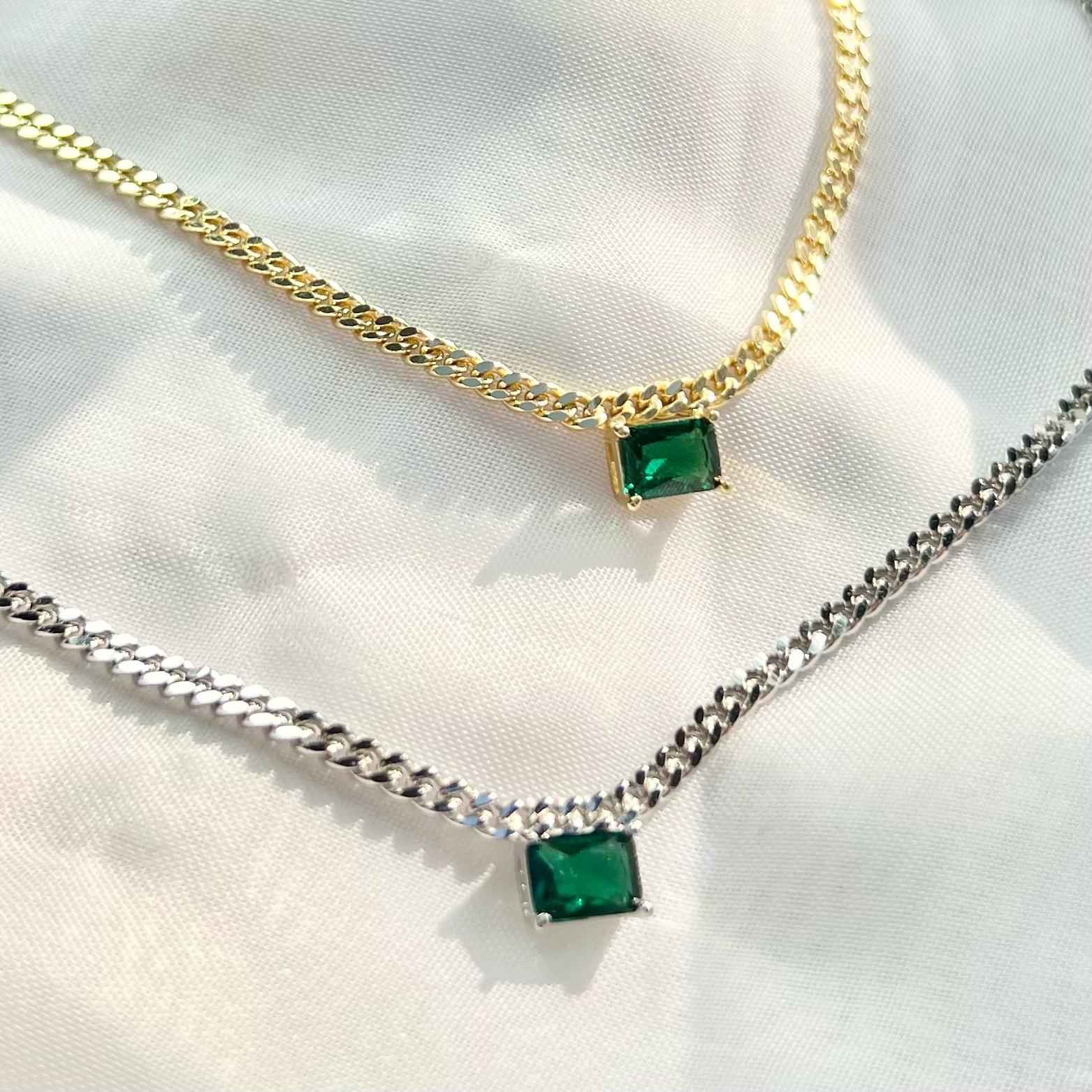 שרשרת חוליות עם אבן מלבן מכסף אמיתי 925