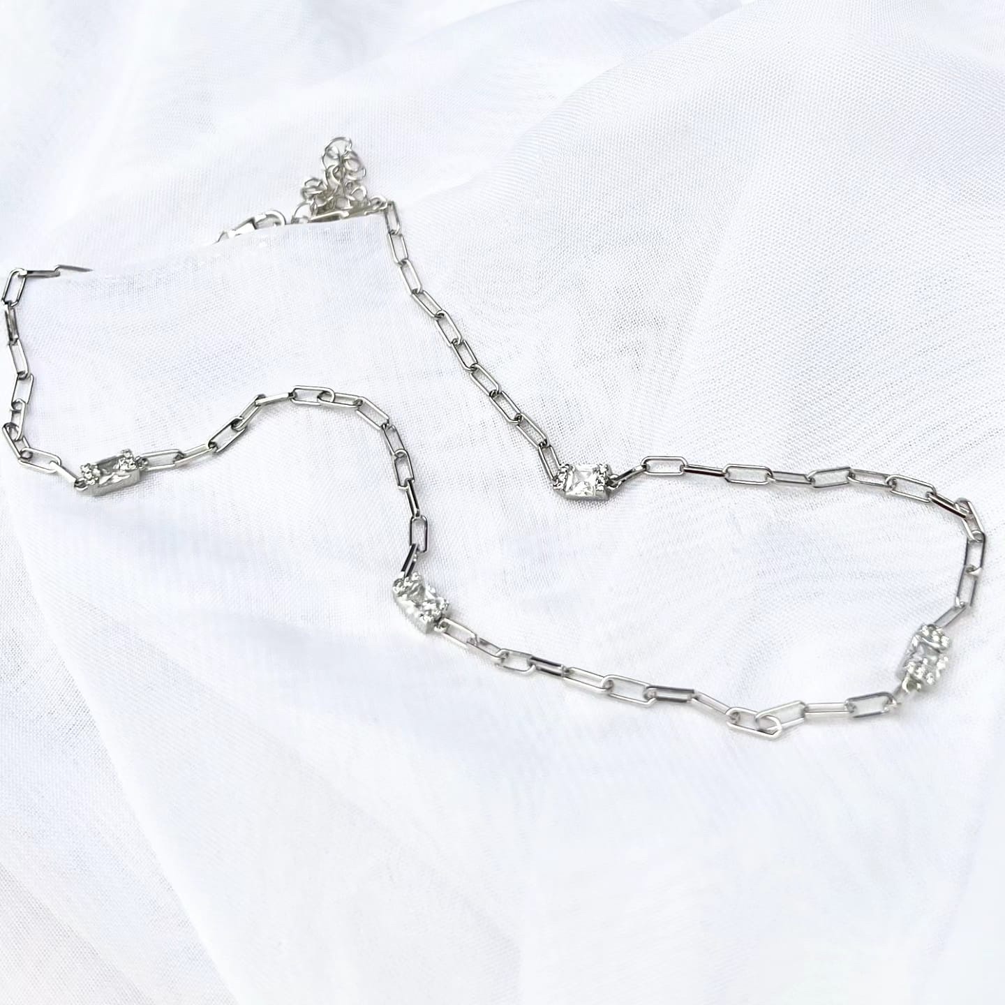שרשרת חוליות עם אבנים מרובעים מכסף אמיתי 925