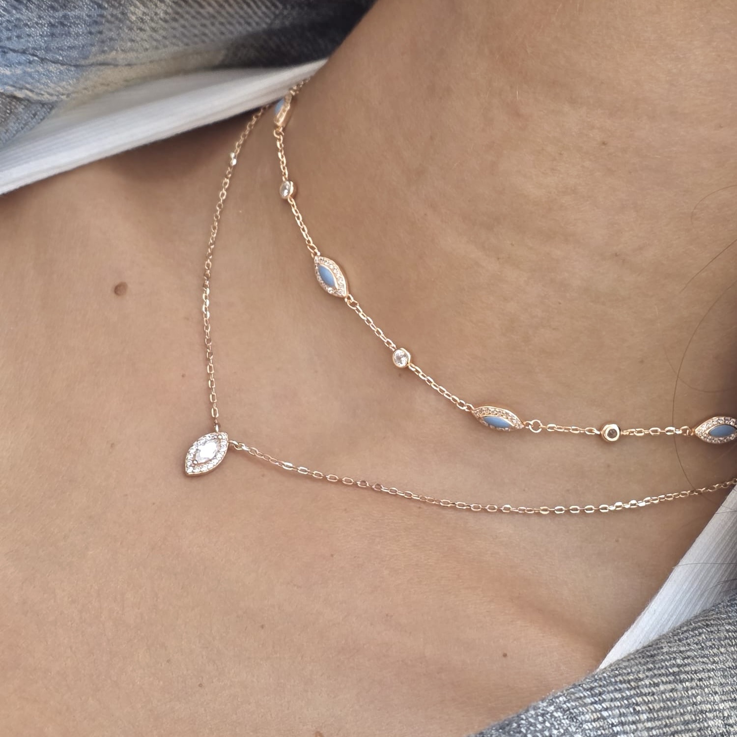 שרשרת עם תליוני אבני טיפות משובצות מסביב ואבני זרקון עגולות מכסף אמיתי 925