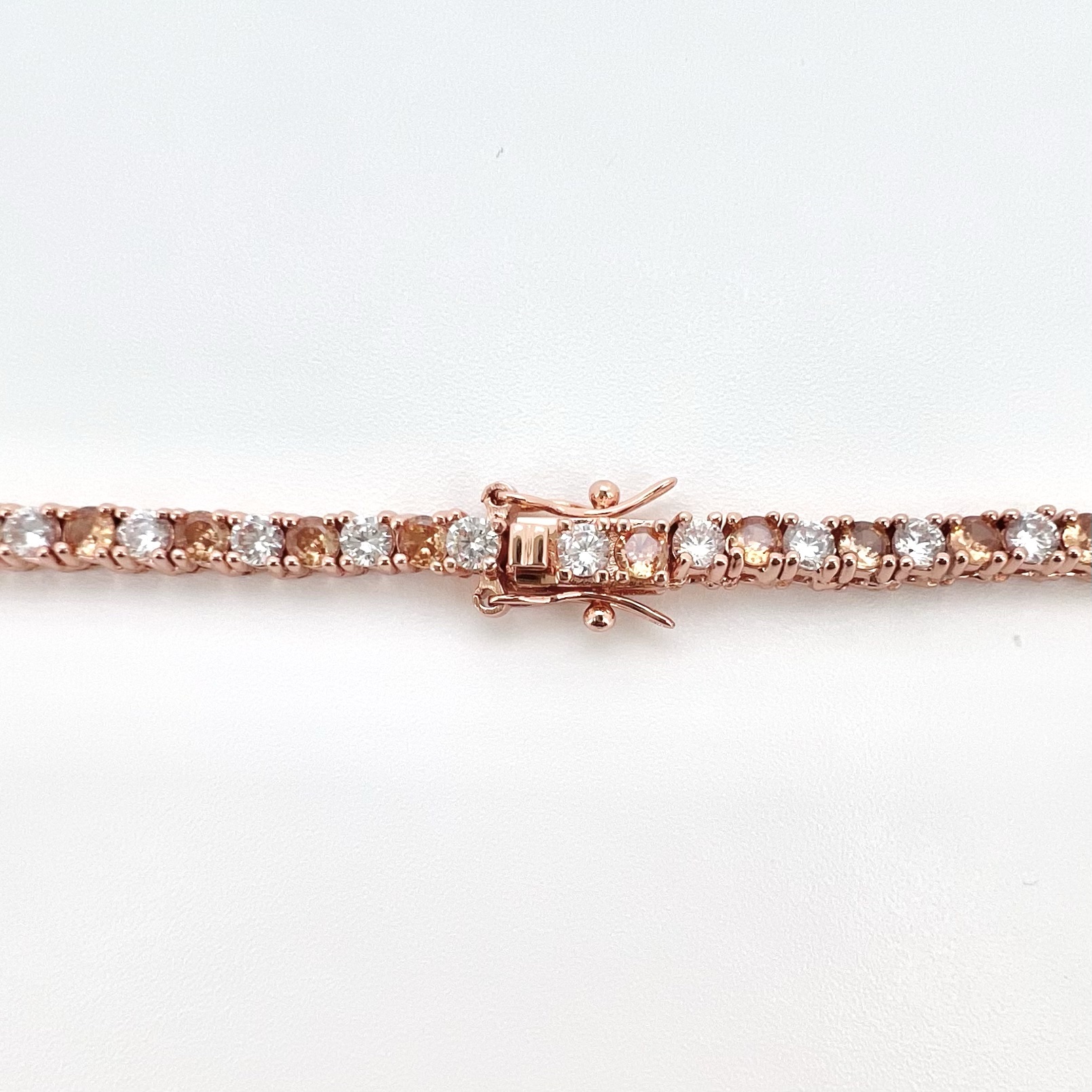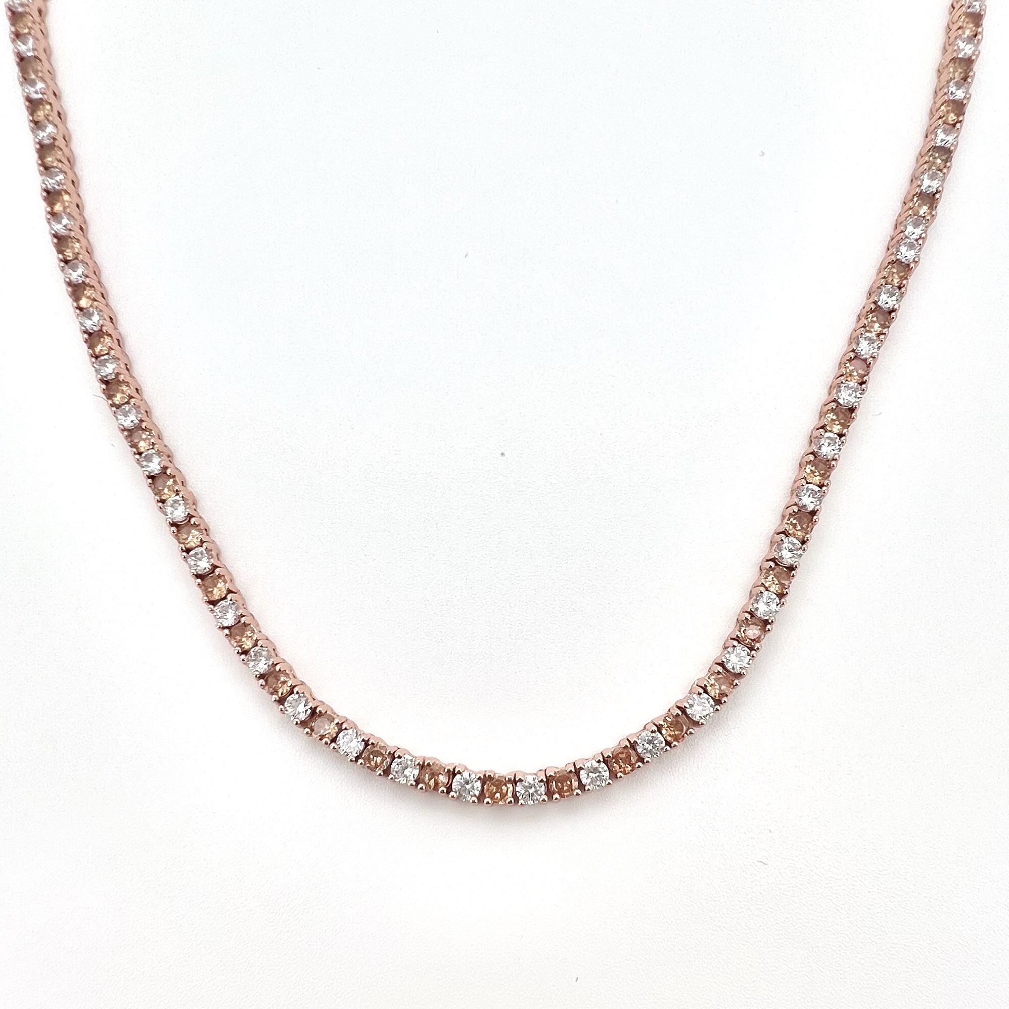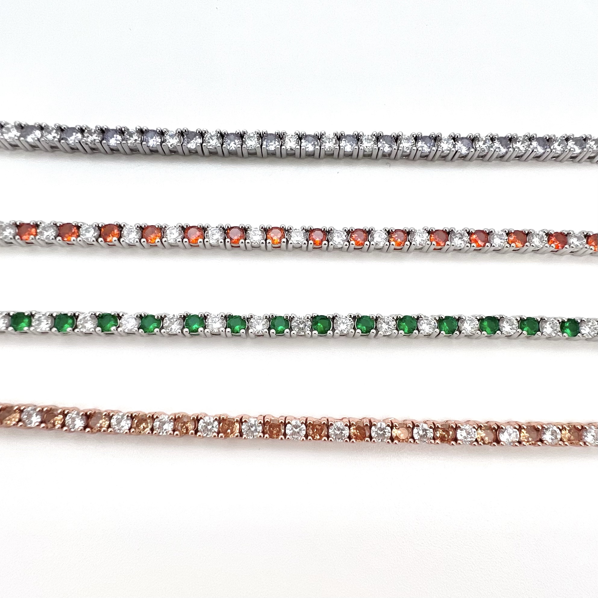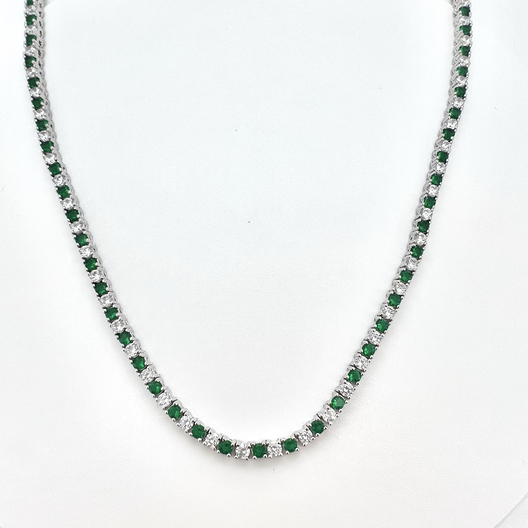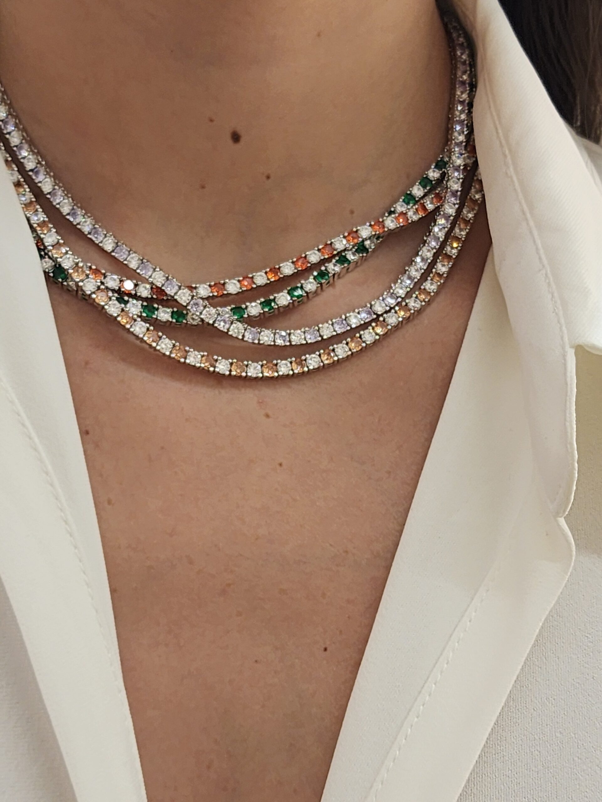 שרשרת טניס משובץ אבני זרקון חצי שקופות חצי בצבעים באורך 40 ס״מ פלוס 5 ס״מ הארכה