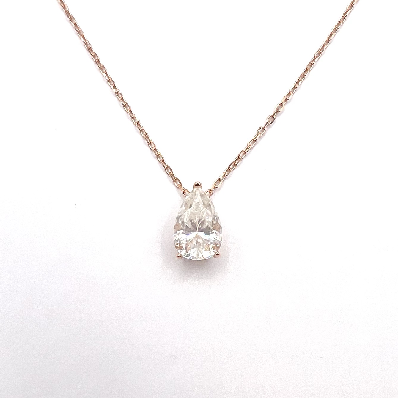 שרשרת מכסף אמיתי 925 עם יהלום מוסונייט 4.5 קארט בצורת טיפה מגיע גם בציפוי רוזגולד וזהב 3 מיקרון חזק במיוחד