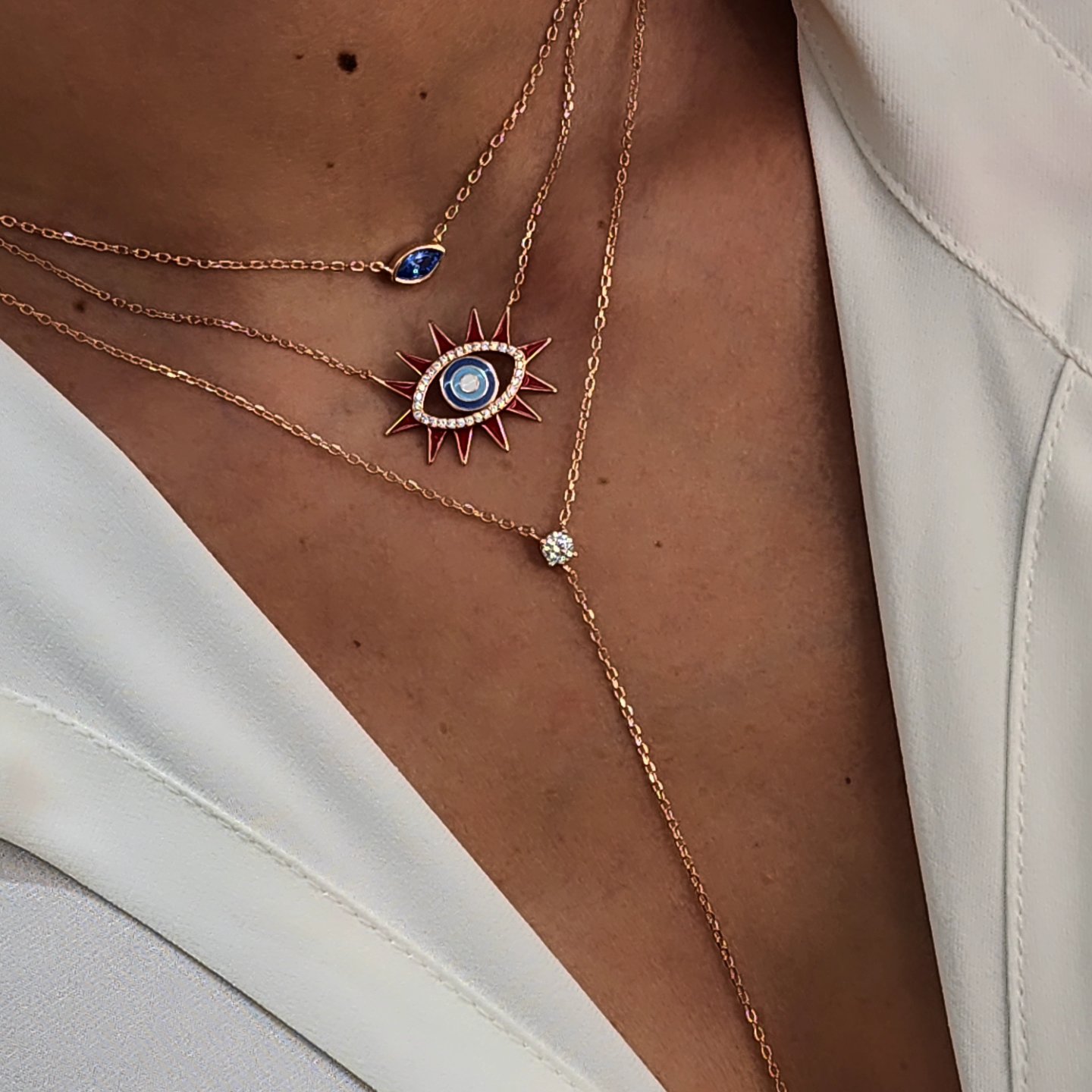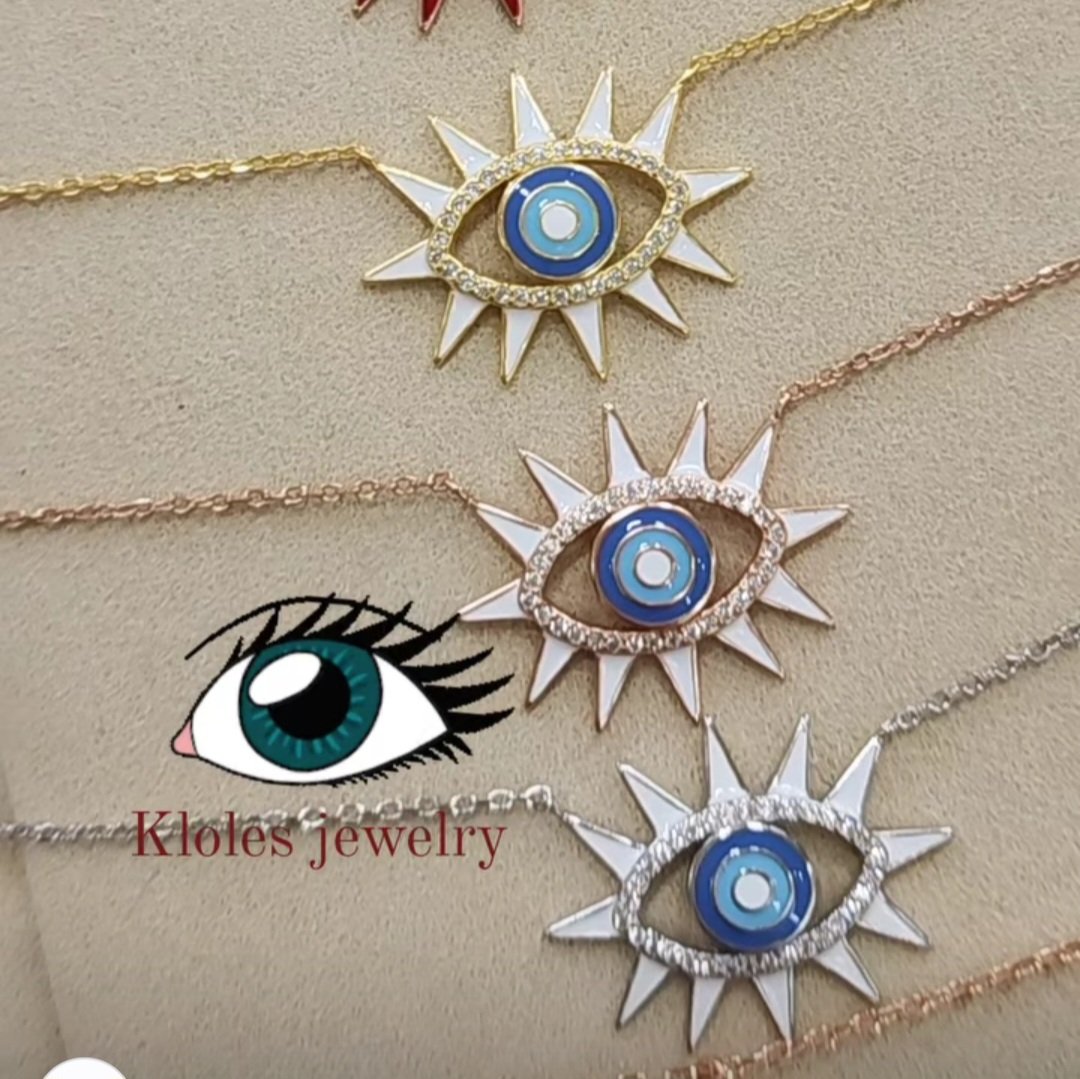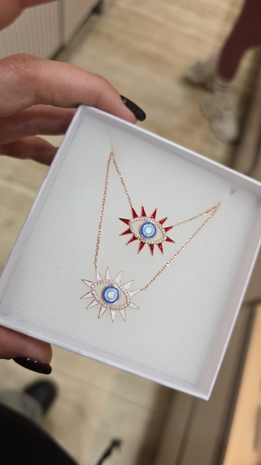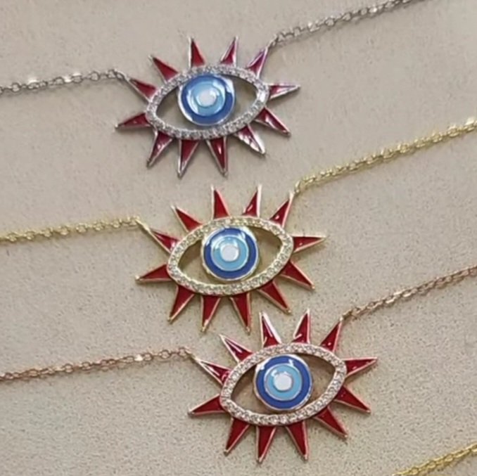 שרשרת עין קורל מכסף אמיתי קרמיקה