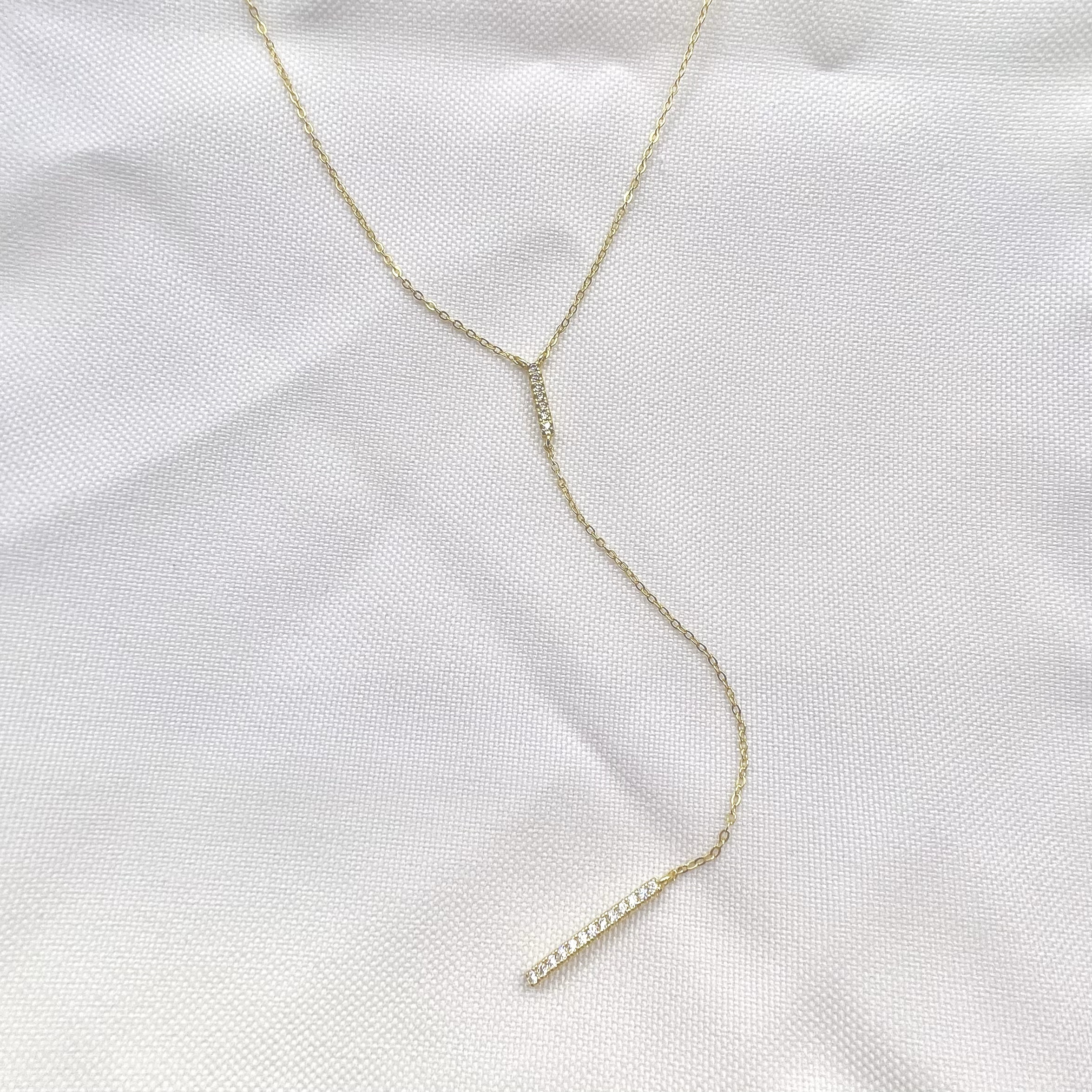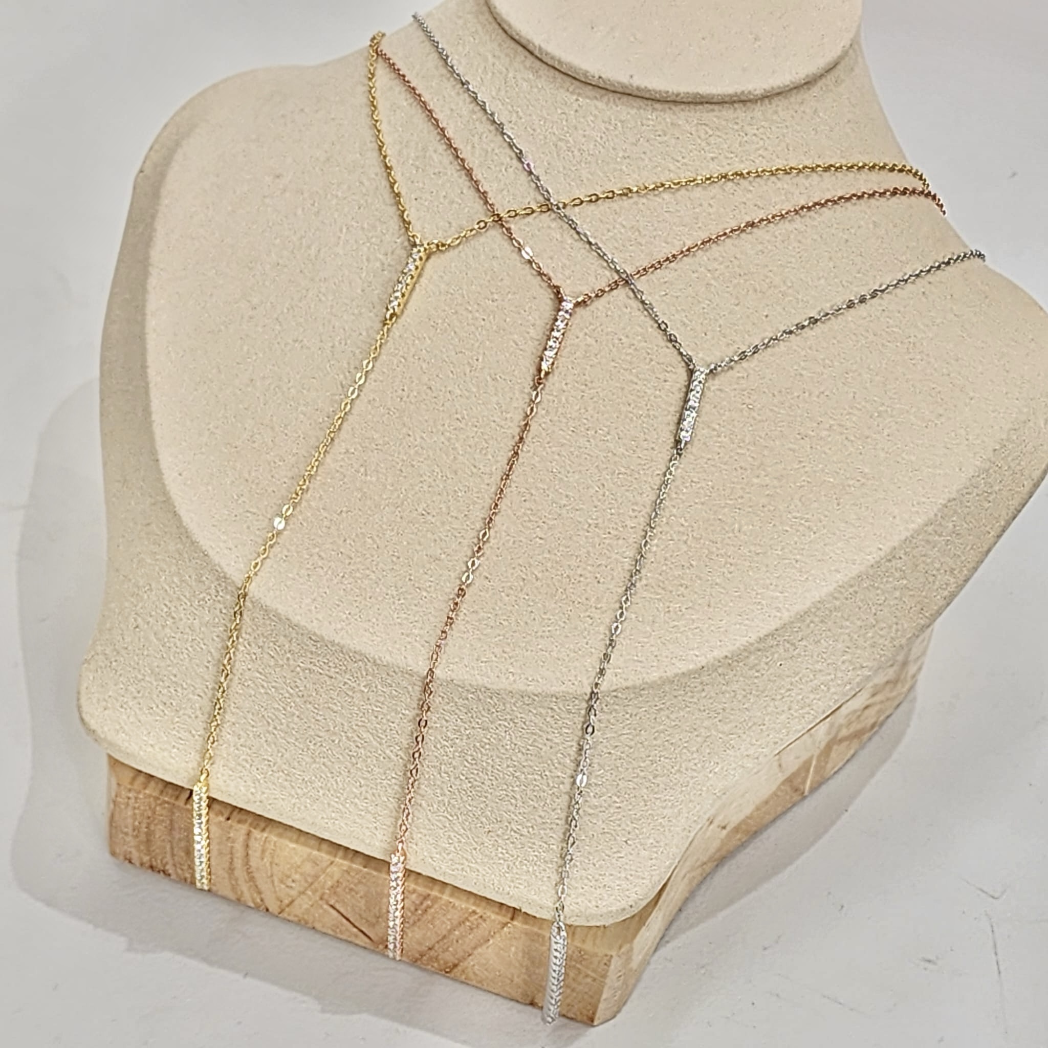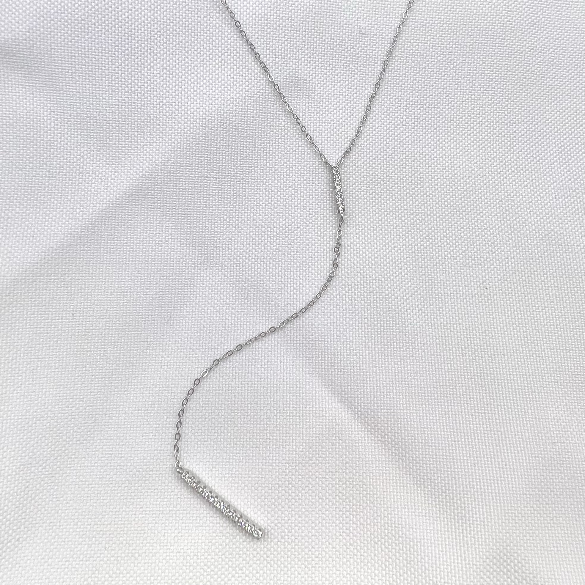 שרשרת עם פלטה דקה משובצת אבני זרקון בתחילת העניבה ובסופה מכסף אמיתי 925