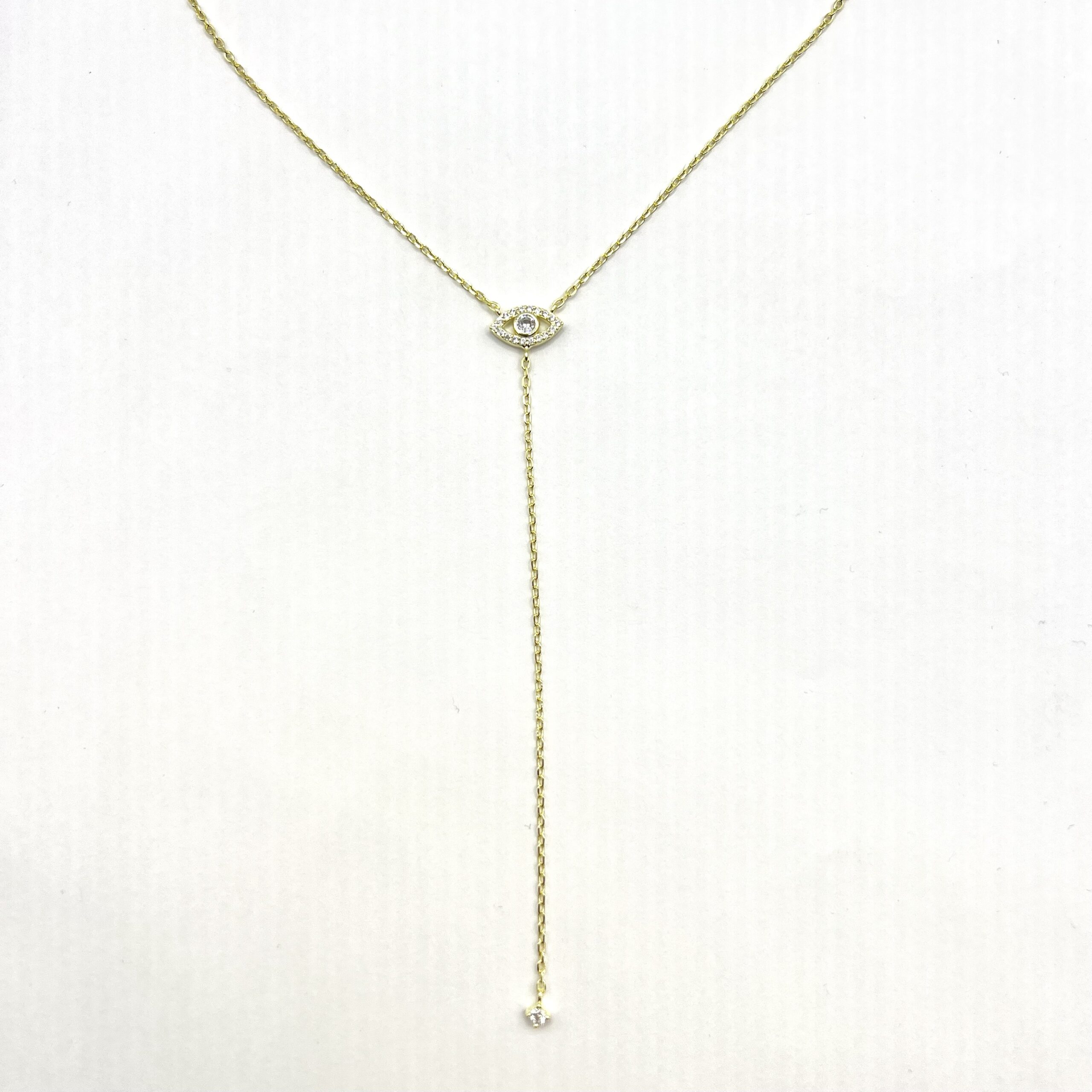 שרשרת עניבה עם תליון עין משובצת אבני זרקון מסביב